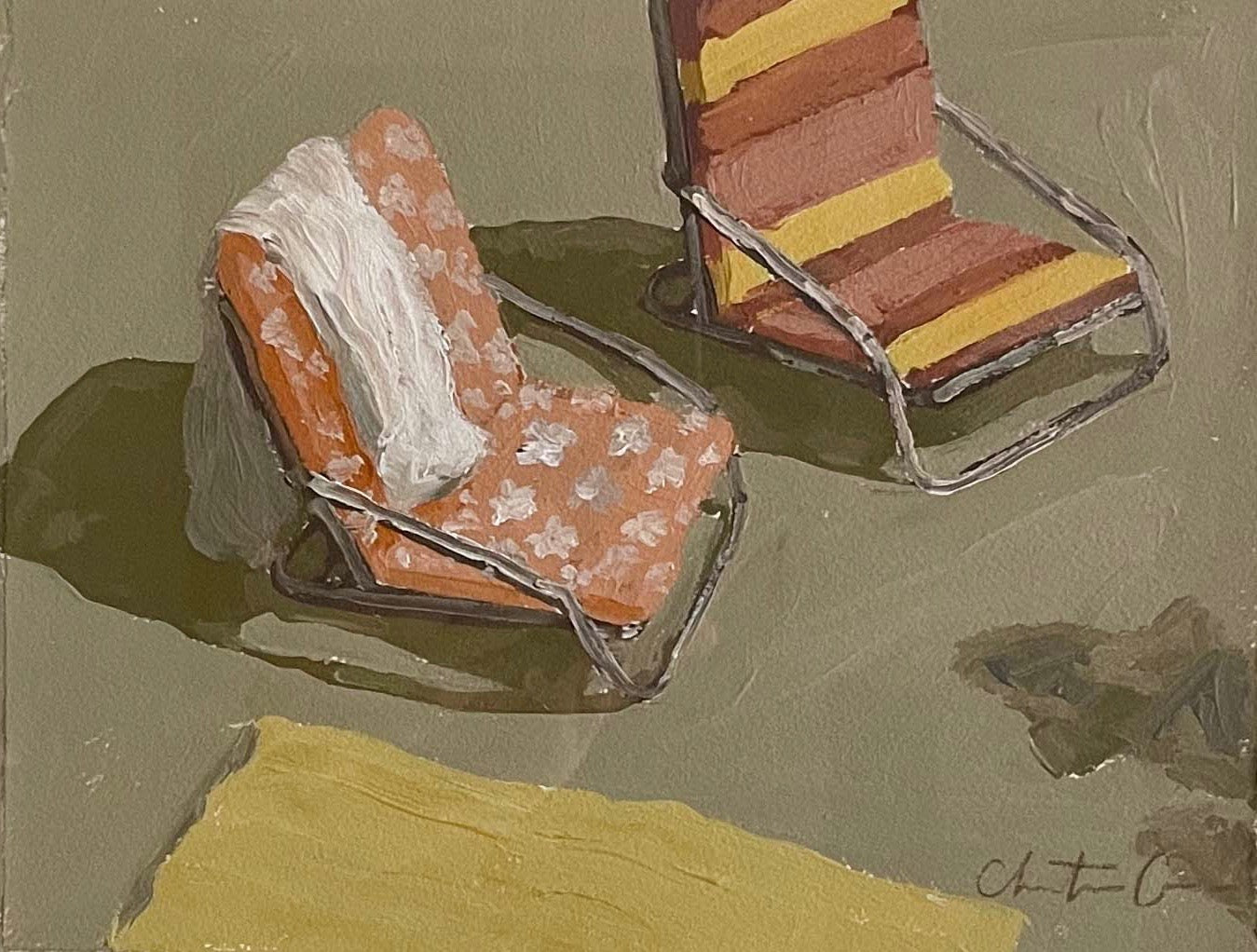 Christine hopes to create artwork that strikes the balance of fun and timeless, in an effortless manner. Composition and color harmony are a distinctive part of her work. Her palettes and subject matter are heavily influenced by her upbringing along the east coast of Florida. She hopes to bring everyday scenes to life through a new perspective and unexpected moments of color. Christine paints entirely from the three primaries (red, yellow + blue) and white. This has helped her gain a strong understanding of color theory.