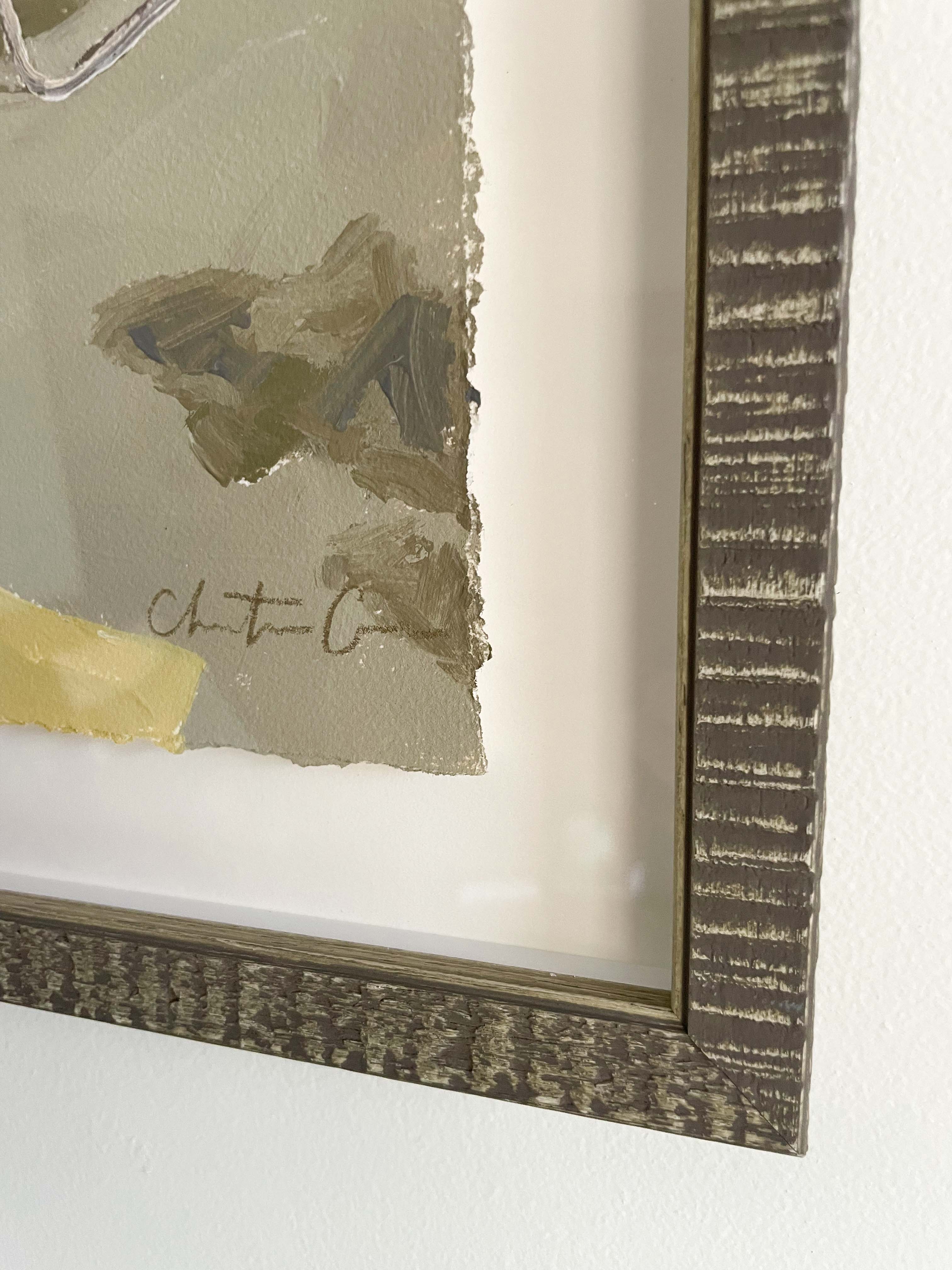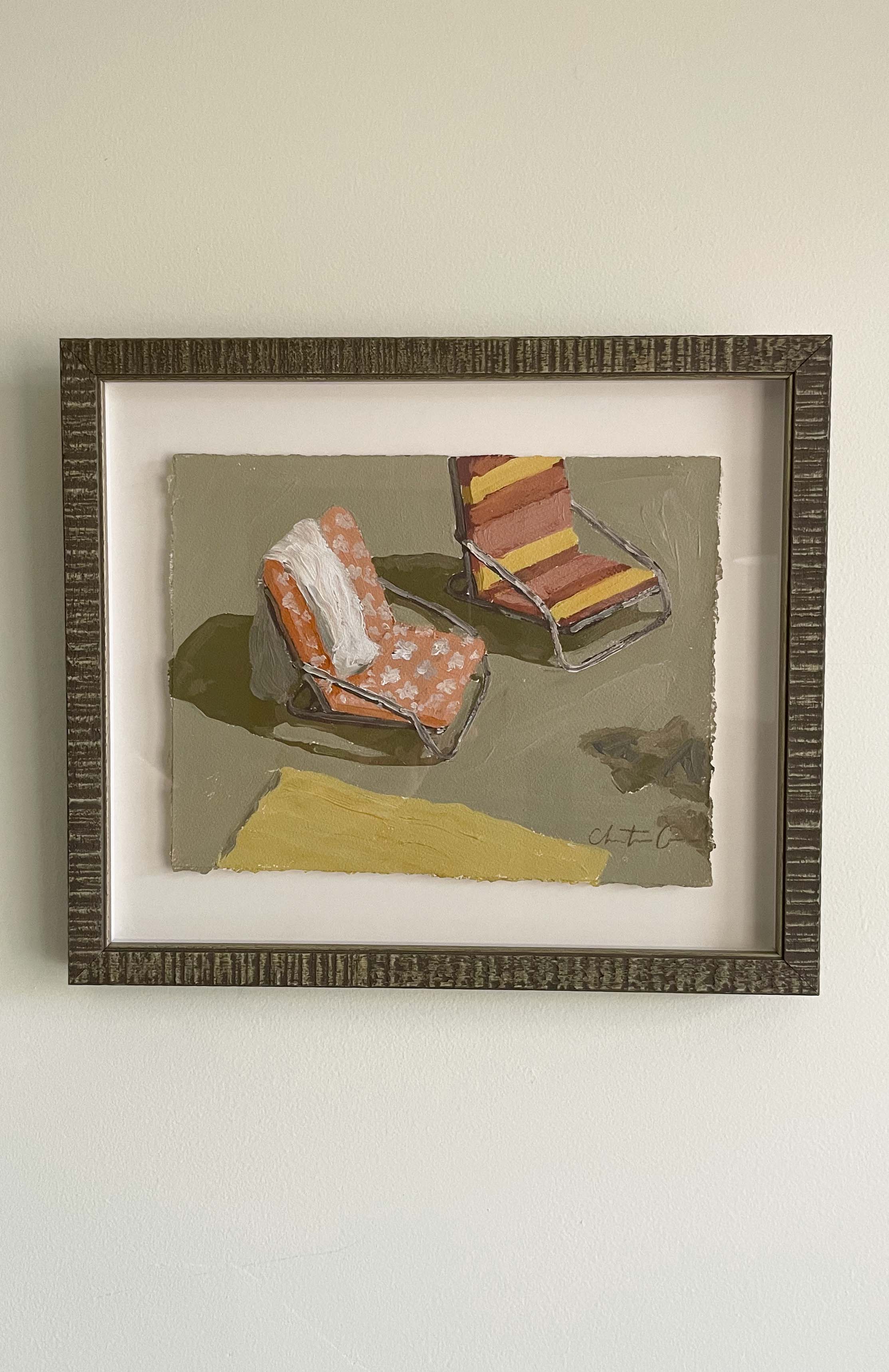 acrylic on paper, in brown frame