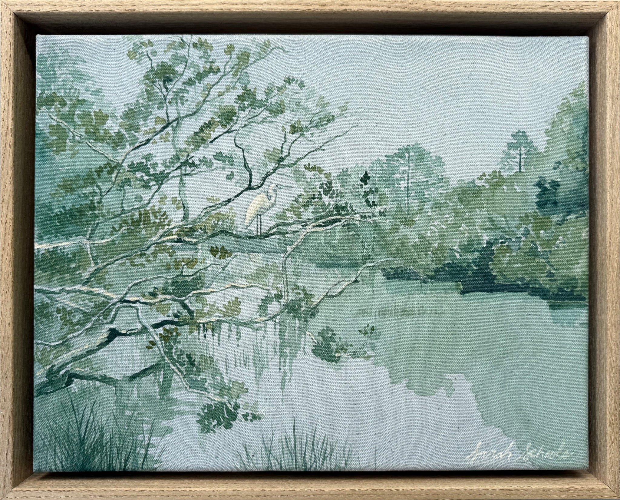 Much of Sarah Schools’ work reflects the warm, seasonal glow of the Carolinas. As both an oil painter and watercolor artist, she finds joy in discovering color in unexpected places—whether it's the dreaminess of golden hour, the soft depth of a cornflower blue shadow, or the delicate light that appears when the sun hits just right. Her creative process often involves experimenting with color to convey mood and atmosphere, layering bright hues and subtle tones with careful detail. Recently, she has been especially drawn to the flora and fauna of the Southeast, capturing native plants, trees, and the wildlife that inhabit them.