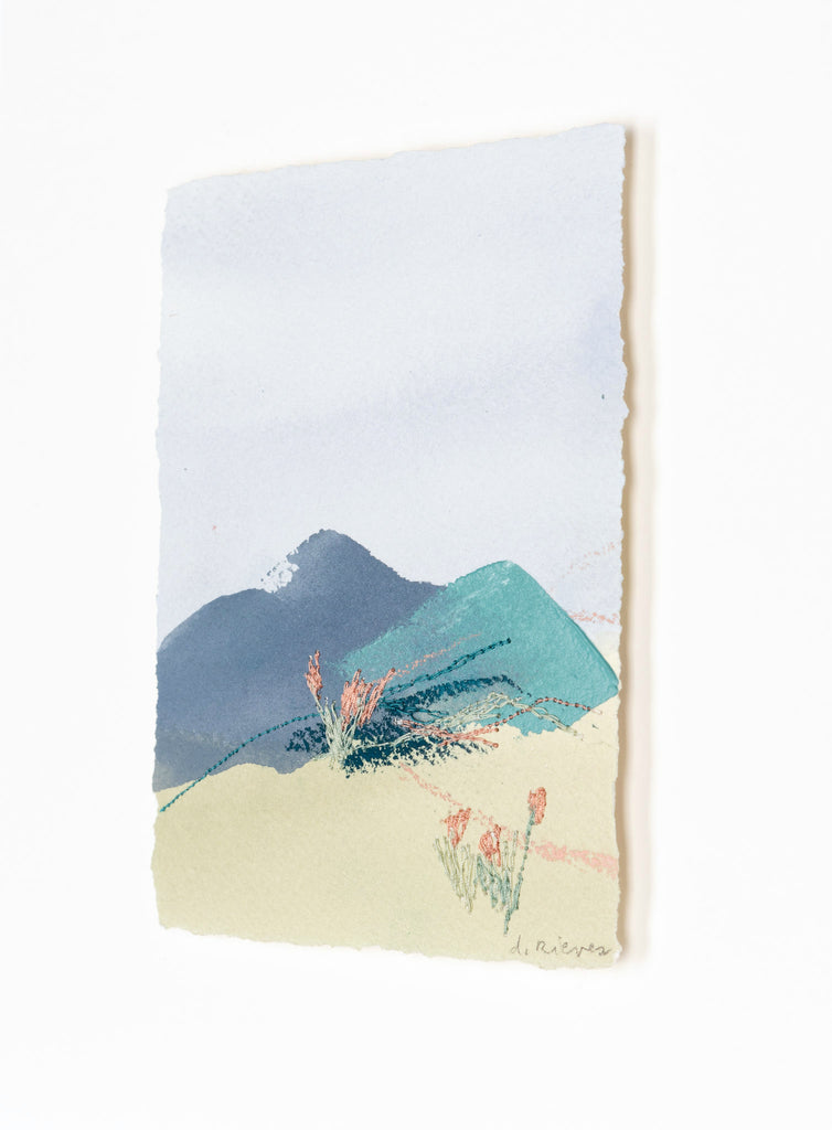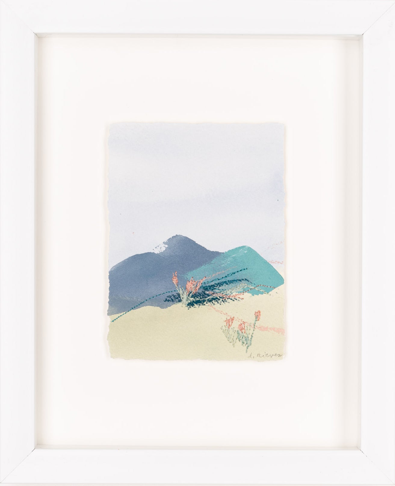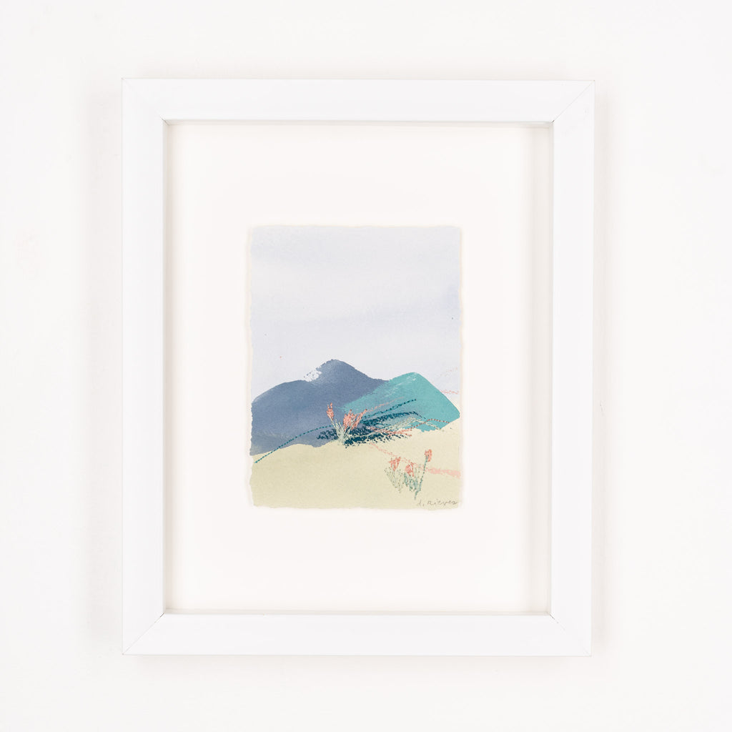 mixed media on paper, floating on white mat, in white shadowbox frame
