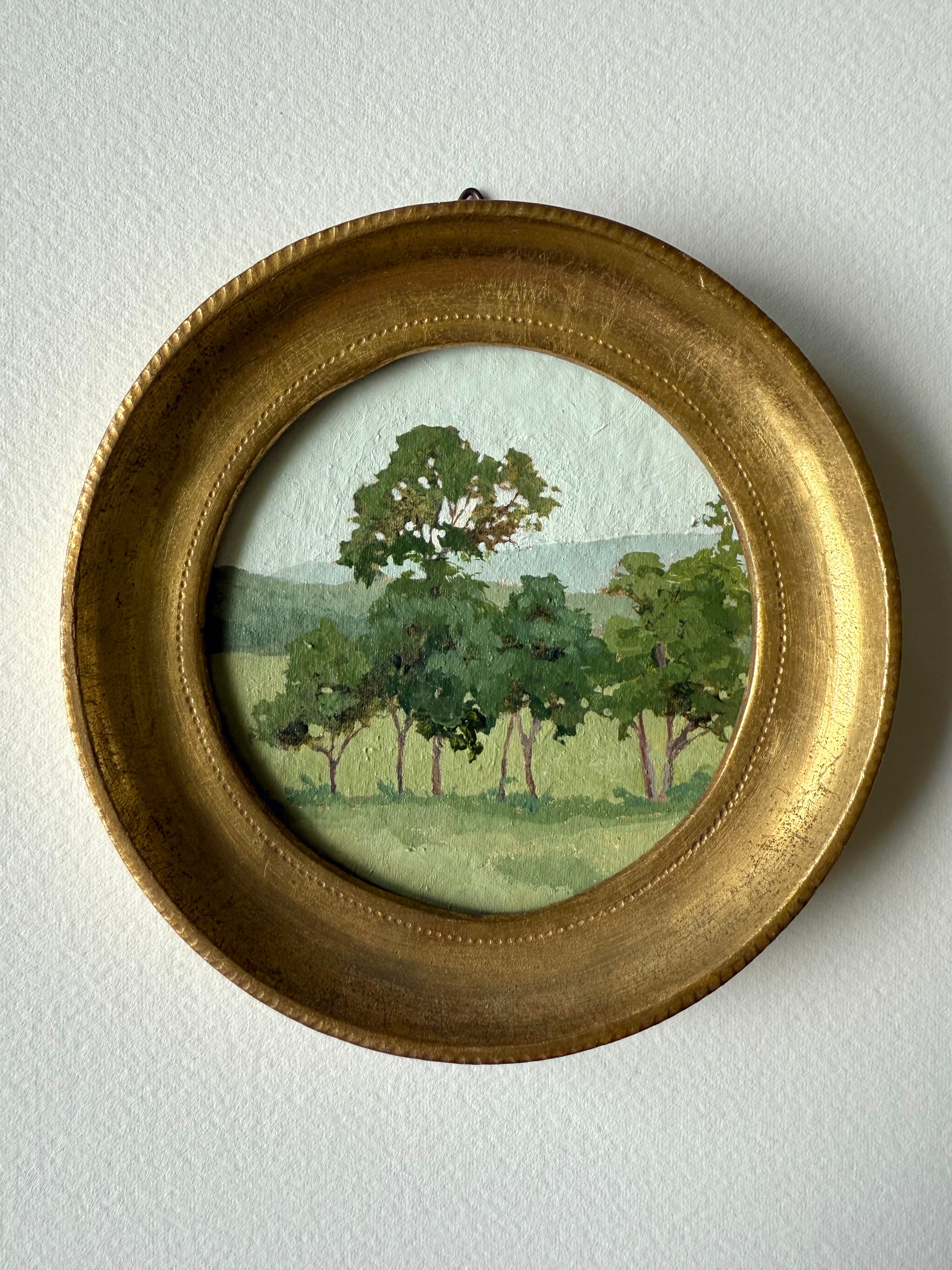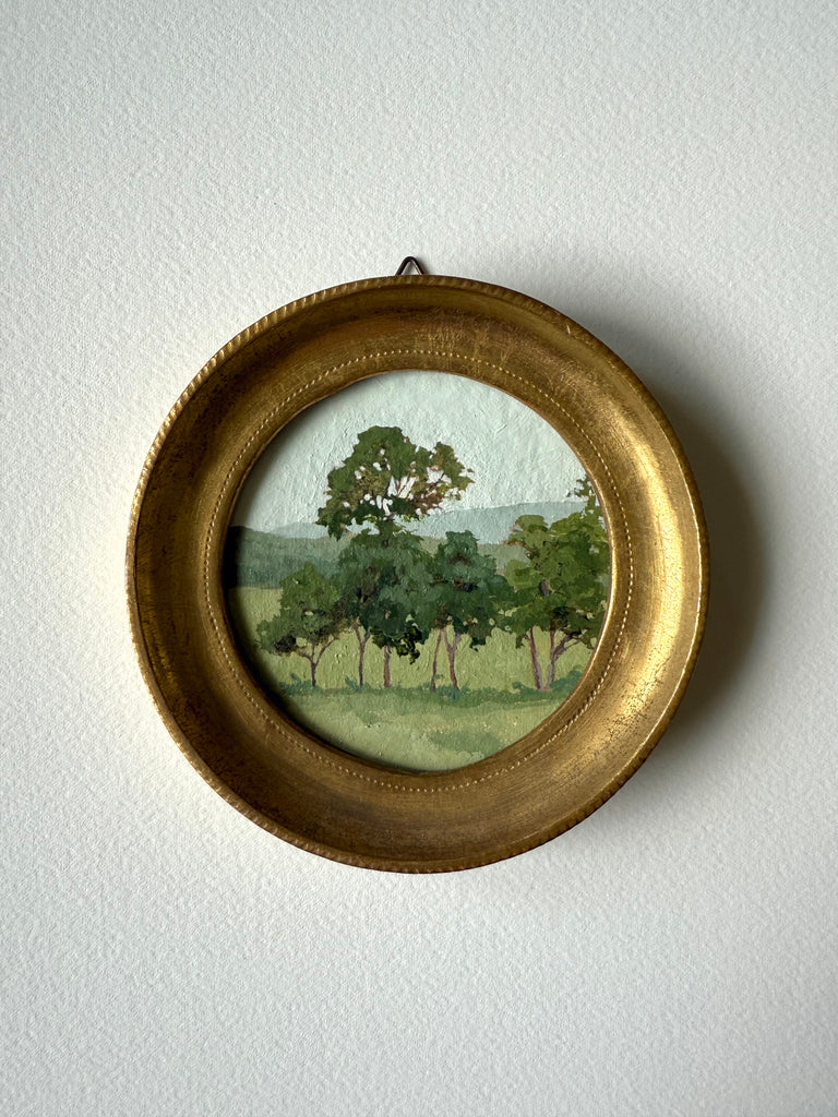 Jennifer was born in Jackson MS and moved to Nashville as a child. She enjoyed art as a child and painted with oils a bit as a teen, but ultimately went to MTSU to earn a degree in nutrition. Jennifer didn’t truly begin painting again until her children were in school full time, and started simply by painting pieces she wanted to hang in her own home. Discovering a love for vintage and antique frames (not to mention looking for these frames both in-person and online), she began pairing them with her favorite paintings. She paints primarily in acrylics on handmade paper. “I love the juxtaposition of a vintage/antique frame with the freshness of a modern landscape on textured handmade paper; the marriage of that tradition and history combined with the fresh clean colors in my pieces brings me joy.” She finds inspiration in clouds and trees and the hunt for the perfect vintage frame. Jennifer lives in Nashville with her husband and two boys.