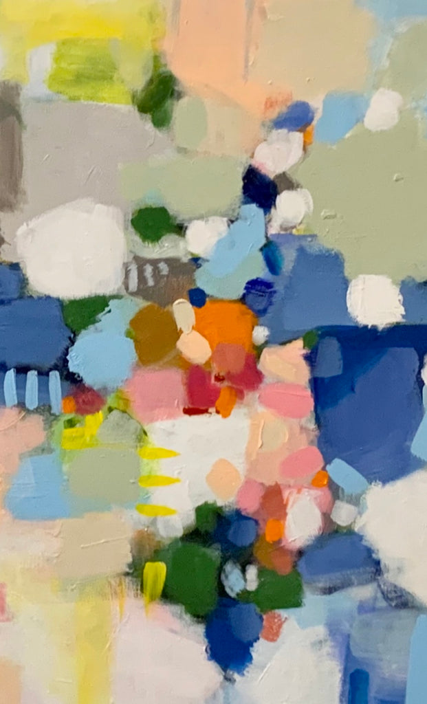 Michele James is an abstract painter known for her large works on canvas. She is inspired by color and movement and uses strong brushstroke and varied marks on neutral canvases with pops of bold colors. She paints with acrylics , and uses chalk, oil pastels and pencil to vary the texture and medium of her works. She is influenced by the colors in nature, the lightness and space of the sky, and the texture and depth of landscapes. “I love to make people happy and for a client to add my painting to their home is wonderful compliment” Michele received a BFA in fine art and art history at Hunter College in New York, NY with a concentration in studio painting. Michele paints out of her home studio in Atlanta where she lives with her husband and three kids.