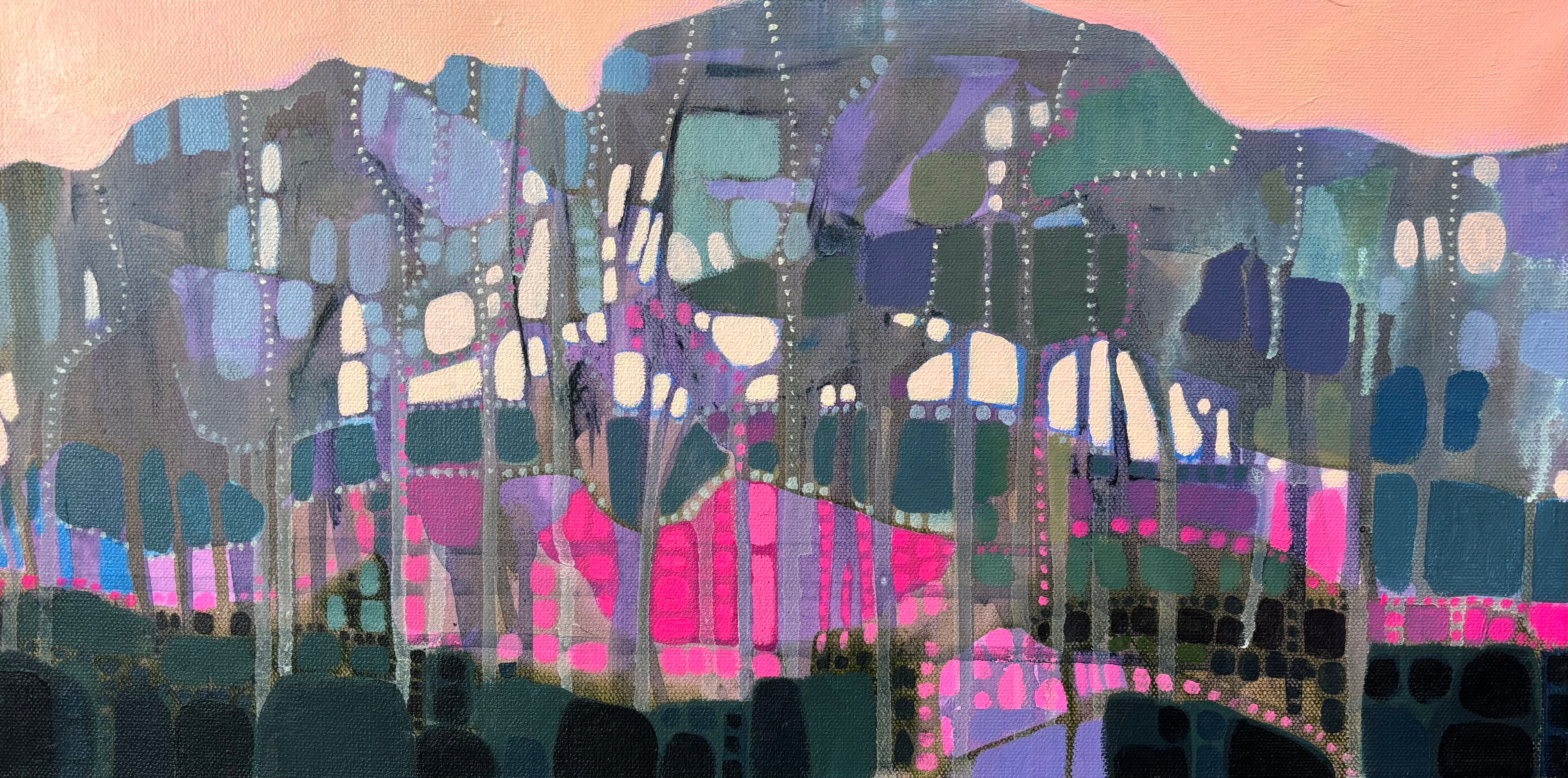 Suzanne absolutely loves color and patterns, and it shows in her work. She often uses an organic process of dripping and layering paint to achieve the effect she’s looking for. Her inspiration comes from the landscapes and people around her. She considers her work as an ongoing exploration, endeavoring to portray the natural and cultural world and those who live in it as strangely beautiful -- yet enormously fragile. Suzanne recently moved back to Virginia from Champaign, Illinois where she met her husband and raised her two wonderful children. Her academic degrees include a landscape architecture degree with an art minor from Virginia Tech and a masters of landscape architecture from University of Illinois. She’s always loved to draw and paint, and when she decided to drop organic chemistry for drawing, and forestry for landscape architecture she knew the creative path was calling her home! She’s painted much of her life, and began exhibiting professionally in the Midwest over the past fifteen years. Now she looks forward to making connections on the East Coast. She happily lives outside of Charlottesville with her husband, her dog and cat, and her mom.