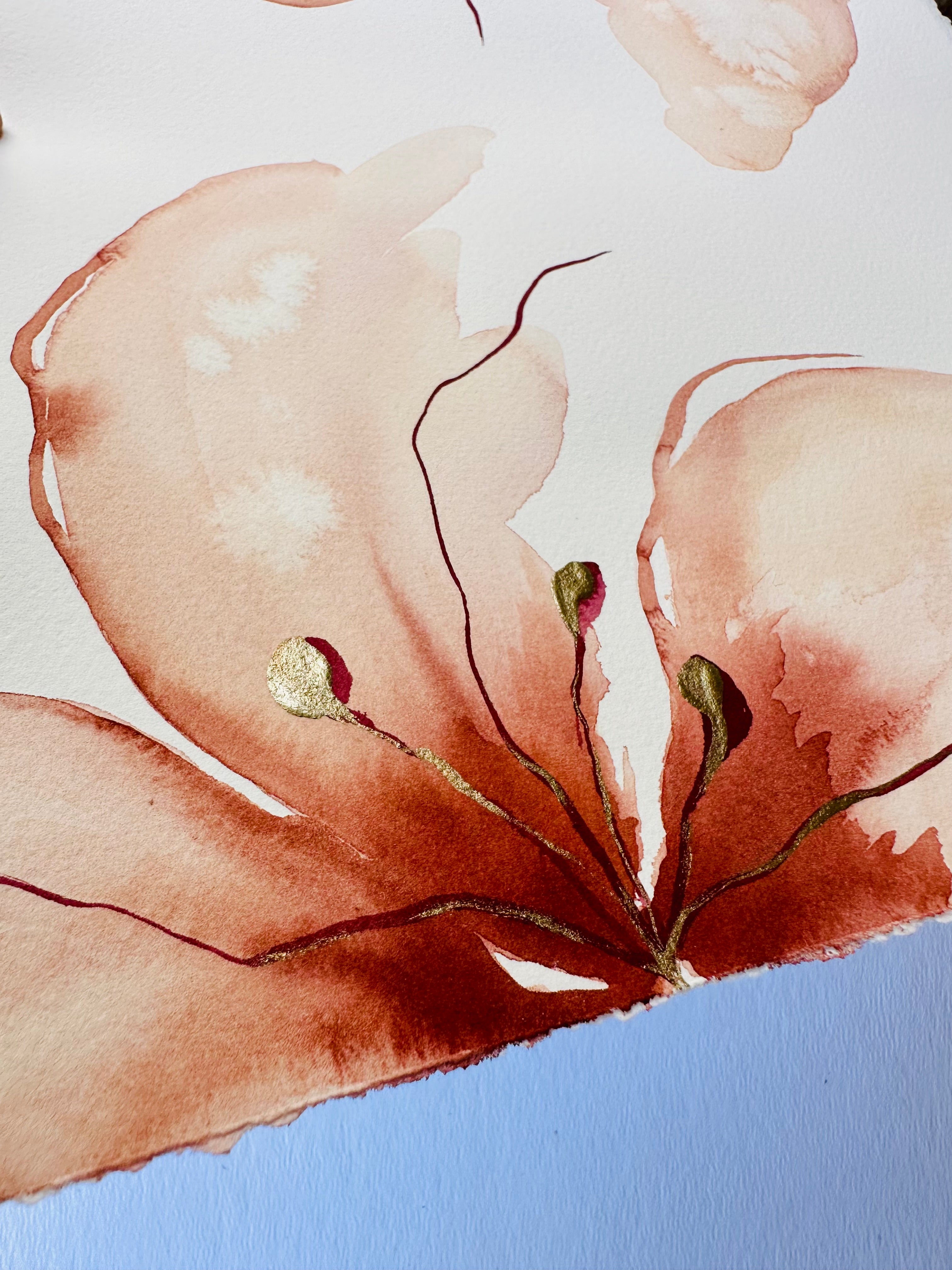 My art is heavily inspired by nature. Each creation takes on its own life, much like nature does when it unfolds. Many of my pieces greet you with a soft, serene atmosphere evoking a peaceful emotion, while others pull you in with the bold colors, telling their own story. I am drawn to the horizon line, the space where land or water meet the sky, a quiet pause at the end of the day as the sun sets, a deep exhale, or a place to root yourself to the earth. It reminds me of how important it is to stay grounded in the world we live in today.​ I received my BFA in Illustration from Washington University in St. Louis. I taught elementary art for many years and have been a professional artist for the past 5 years. In addition to my studio practice, I lead watercolor workshops and retreats. This work allows me to connect with women, teaching them how to use the medium as a tool to ease anxiety. My painting practice is what grounds me daily. I love sharing with others how to set intentions and being mindful with their own creativity.