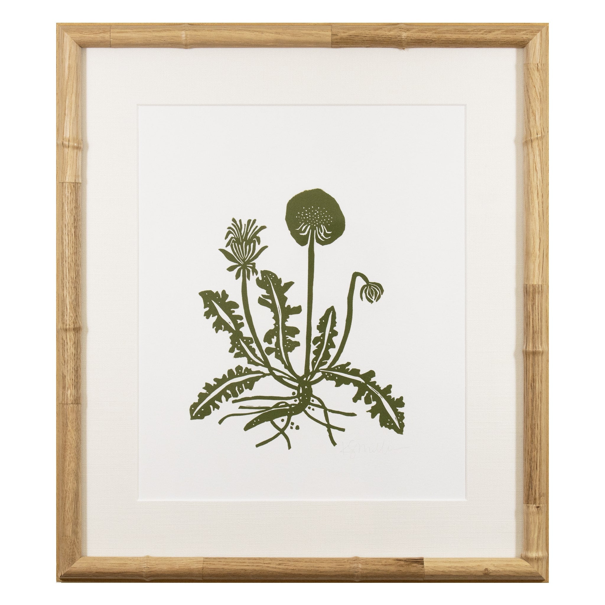 hand-carved and hand-printed linocut, floating on white linen mat, framed in natural bamboo frame