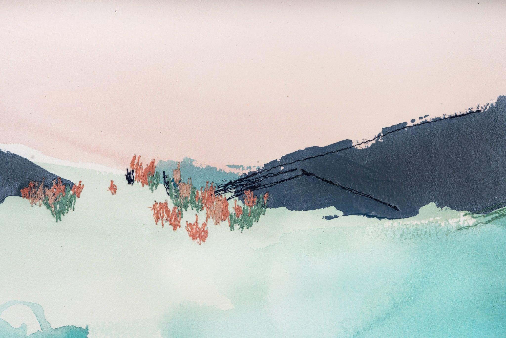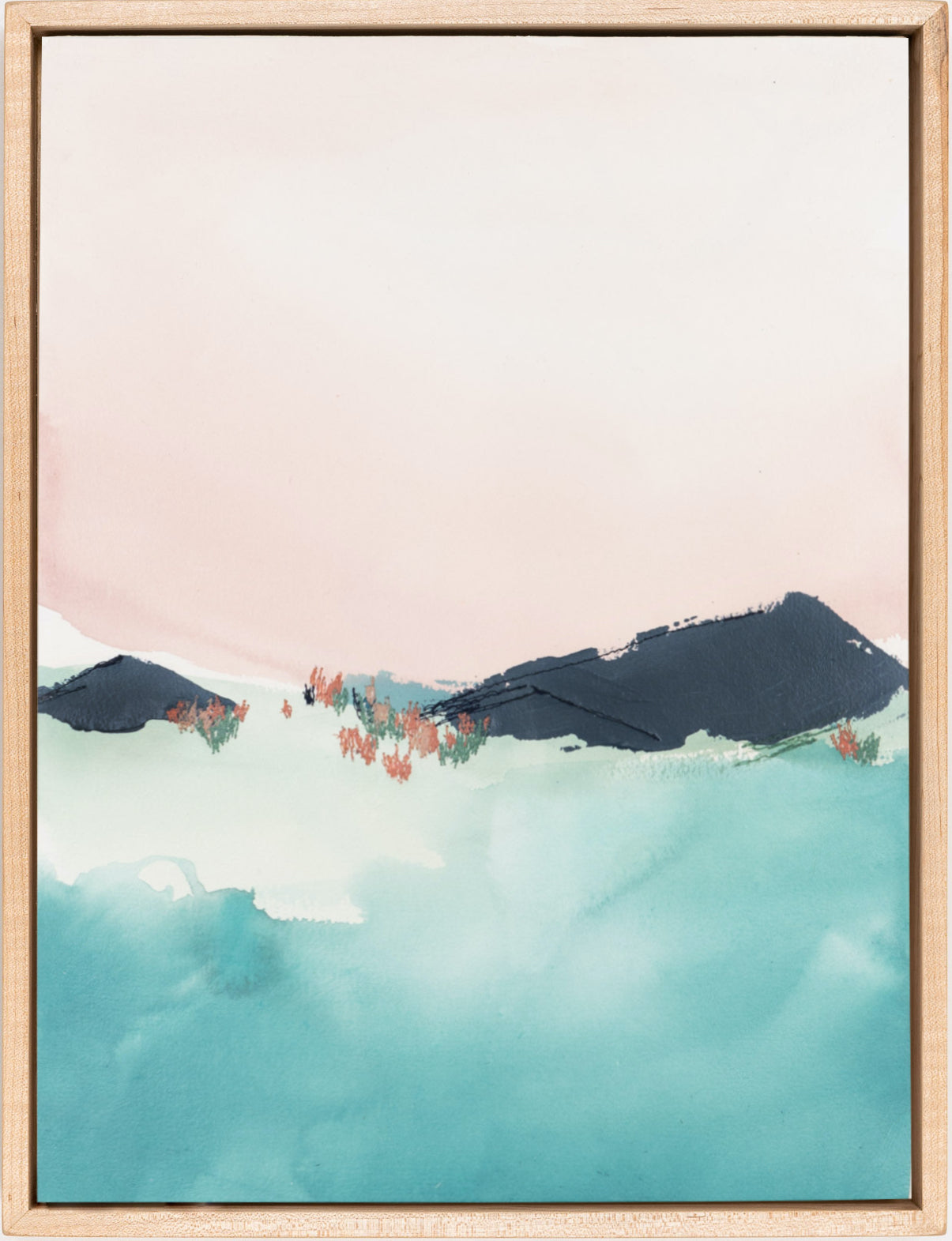 mixed media on wood panel, in maple frame