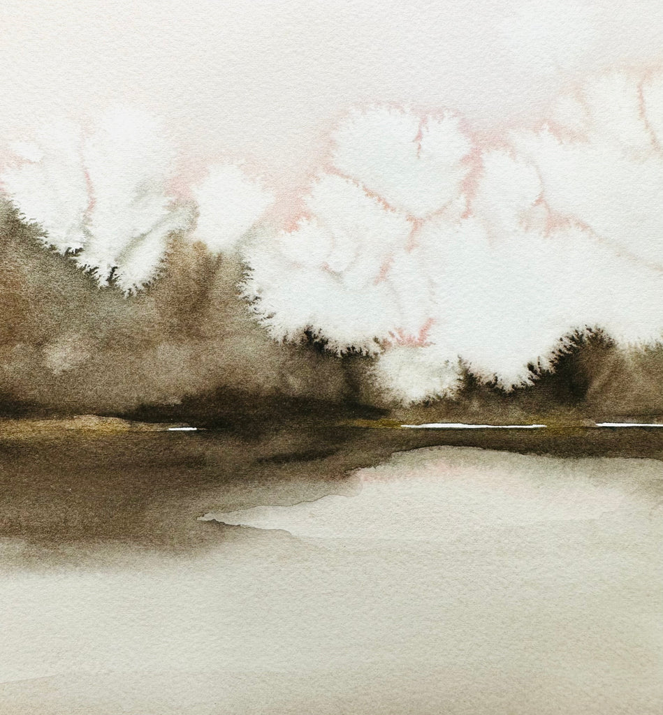 My art is heavily inspired by nature. Each creation takes on its own life, much like nature does when it unfolds. Many of my pieces greet you with a soft, serene atmosphere evoking a peaceful emotion, while others pull you in with the bold colors, telling their own story. I am drawn to the horizon line, the space where land or water meet the sky, a quiet pause at the end of the day as the sun sets, a deep exhale, or a place to root yourself to the earth. It reminds me of how important it is to stay grounded in the world we live in today.​ I received my BFA in Illustration from Washington University in St. Louis. I taught elementary art for many years and have been a professional artist for the past 5 years. In addition to my studio practice, I lead watercolor workshops and retreats. This work allows me to connect with women, teaching them how to use the medium as a tool to ease anxiety. My painting practice is what grounds me daily. I love sharing with others how to set intentions and being mindful with their own creativity.