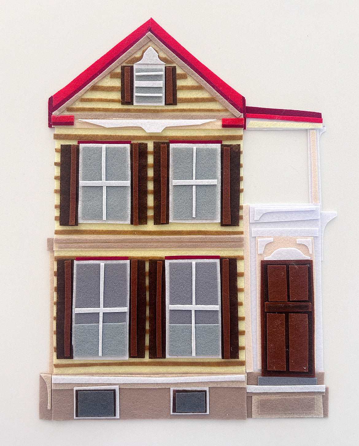 Sam Sidney is originally from New York, and moved to Charleston in 2007. She studied Studio Art at Skidmore College in Saratoga Springs, and earned a Masters in Art Education from NYU. For many years she was an illustrator, but it wasn’t until the quarantine that she started working with felt. She promised herself she would do an art project with her kids each day. One day, she pulled out a small box of felt and made some collages. She made a self portrait out of felt, posted it online, and the rest is history! She free hand cuts felt pieces to create protists of celebrities, pets, food and drinks. When she is not making things out of felt, you can find her at the beach with her 4 kids and 2 dogs.