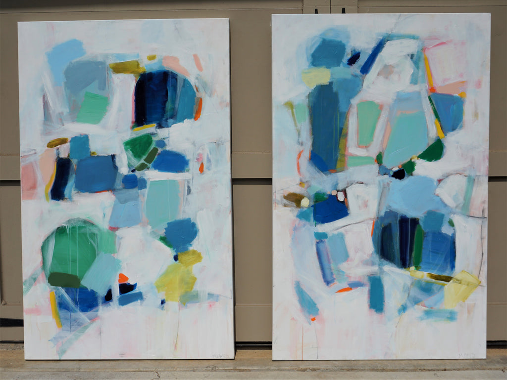 Michele James is an abstract painter known for her large works on canvas. She is inspired by color and movement and uses strong brushstroke and varied marks on neutral canvases with pops of bold colors. She paints with acrylics , and uses chalk, oil pastels and pencil to vary the texture and medium of her works. She is influenced by the colors in nature, the lightness and space of the sky, and the texture and depth of landscapes. “I love to make people happy and for a client to add my painting to their home is wonderful compliment” Michele received a BFA in fine art and art history at Hunter College in New York, NY with a concentration in studio painting. Michele paints out of her home studio in Atlanta where she lives with her husband and three kids.