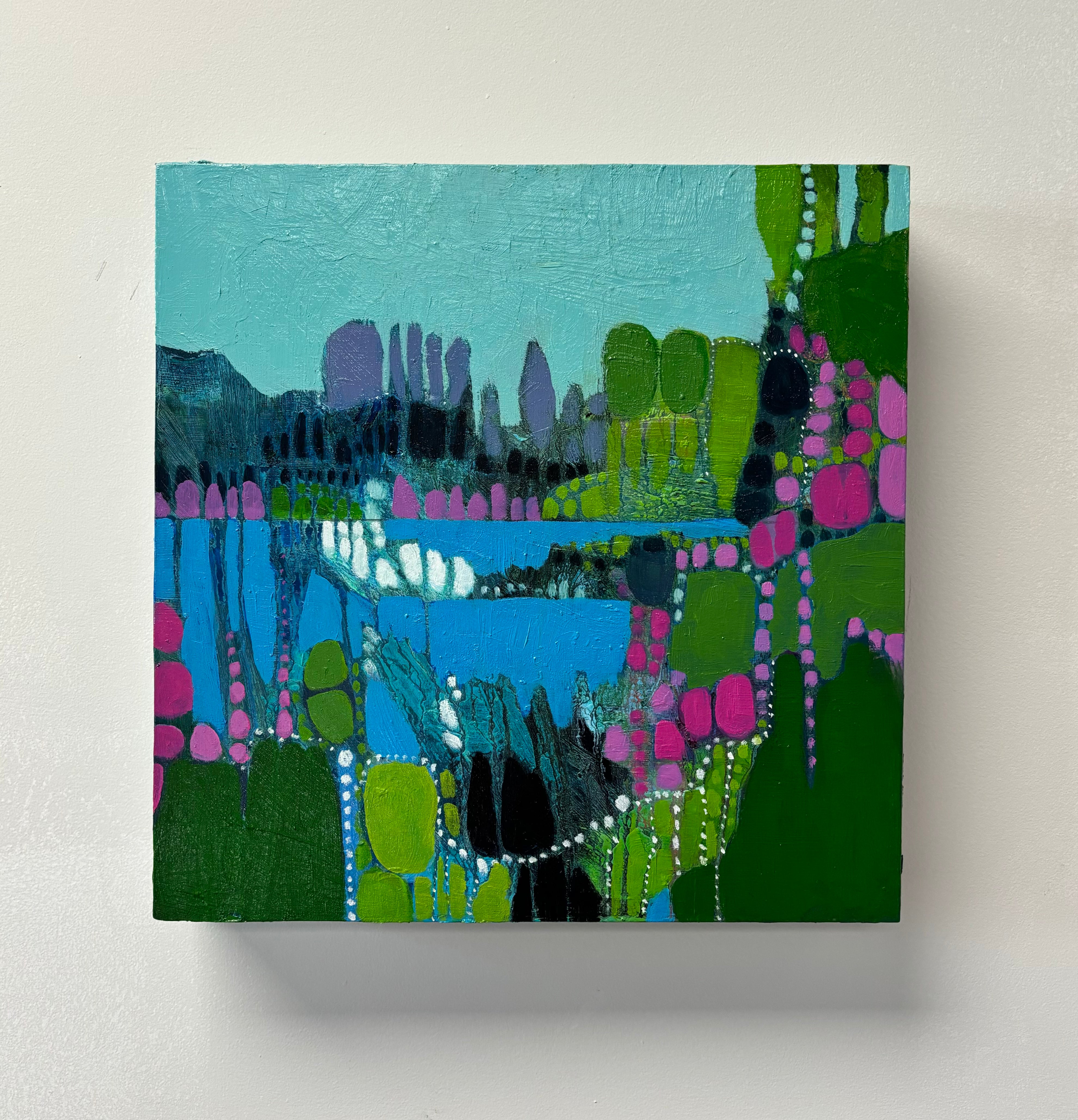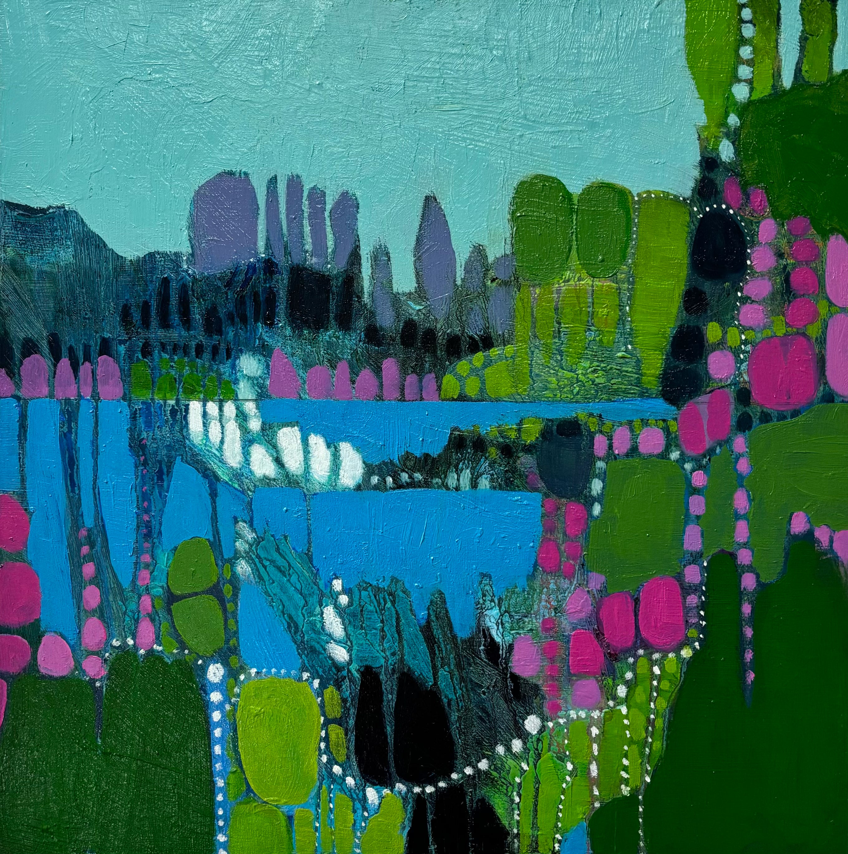 Suzanne absolutely loves color and patterns, and it shows in her work. She often uses an organic process of dripping and layering paint to achieve the effect she’s looking for. Her inspiration comes from the landscapes and people around her. She considers her work as an ongoing exploration, endeavoring to portray the natural and cultural world and those who live in it as strangely beautiful -- yet enormously fragile. Suzanne recently moved back to Virginia from Champaign, Illinois where she met her husband and raised her two wonderful children. Her academic degrees include a landscape architecture degree with an art minor from Virginia Tech and a masters of landscape architecture from University of Illinois. She’s always loved to draw and paint, and when she decided to drop organic chemistry for drawing, and forestry for landscape architecture she knew the creative path was calling her home! She’s painted much of her life, and began exhibiting professionally in the Midwest over the past fifteen years. Now she looks forward to making connections on the East Coast. She happily lives outside of Charlottesville with her husband, her dog and cat, and her mom.