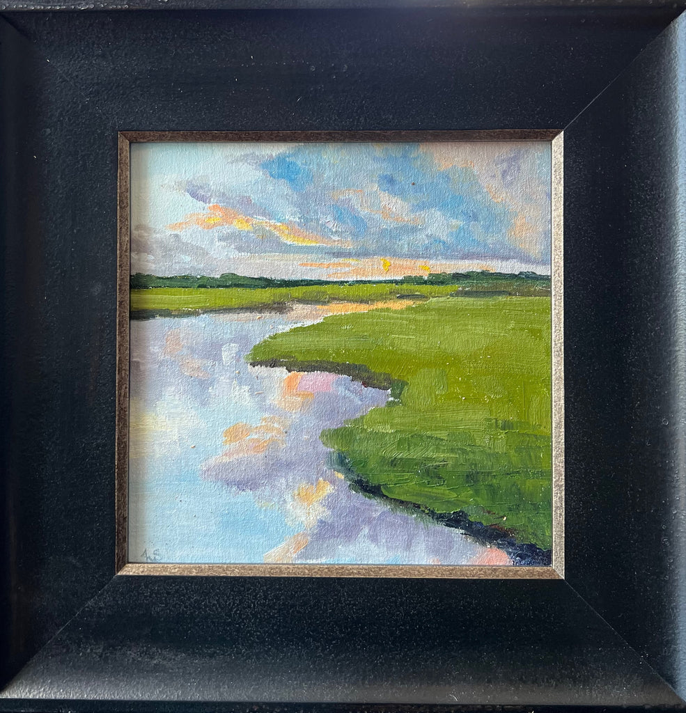 oil on linen panel, in black and gold frame