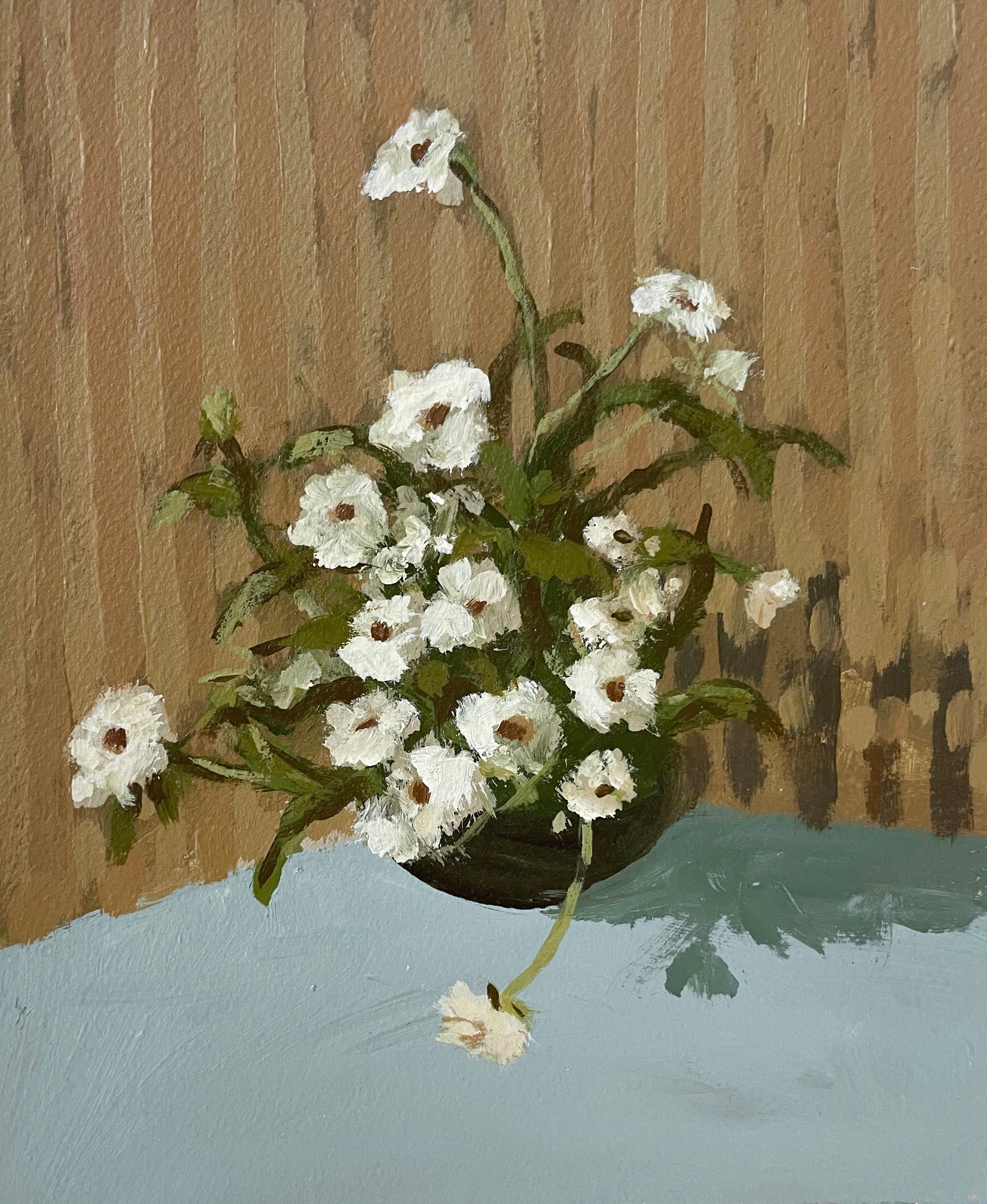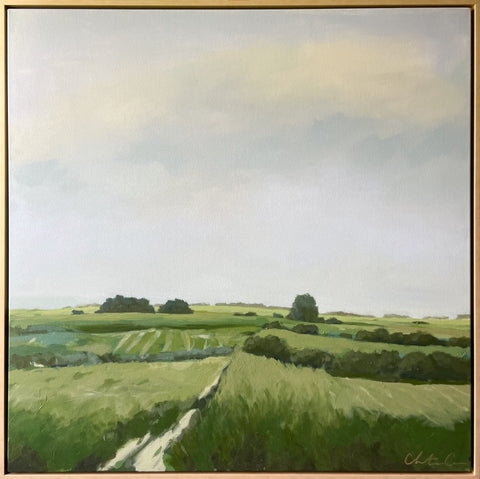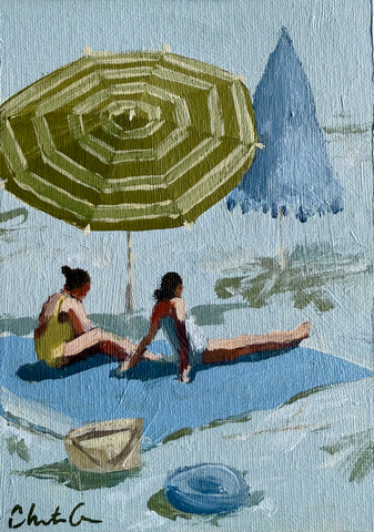 Christine hopes to create artwork that strikes the balance of fun and timeless, in an effortless manner. Composition and color harmony are a distinctive part of her work. Her palettes and subject matter are heavily influenced by her upbringing along the east coast of Florida. She hopes to bring everyday scenes to life through a new perspective and unexpected moments of color. Christine paints entirely from the three primaries (red, yellow + blue) and white. This has helped her gain a strong understanding of color theory.