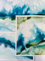 My art is heavily inspired by nature. Each creation takes on its own life, much like nature does when it unfolds. Many of my pieces greet you with a soft, serene atmosphere evoking a peaceful emotion, while others pull you in with the bold colors, telling their own story. I am drawn to the horizon line, the space where land or water meet the sky, a quiet pause at the end of the day as the sun sets, a deep exhale, or a place to root yourself to the earth. It reminds me of how important it is to stay grounded in the world we live in today.​ I received my BFA in Illustration from Washington University in St. Louis. I taught elementary art for many years and have been a professional artist for the past 5 years. In addition to my studio practice, I lead watercolor workshops and retreats. This work allows me to connect with women, teaching them how to use the medium as a tool to ease anxiety. My painting practice is what grounds me daily. I love sharing with others how to set intentions and being mindful with their own creativity.