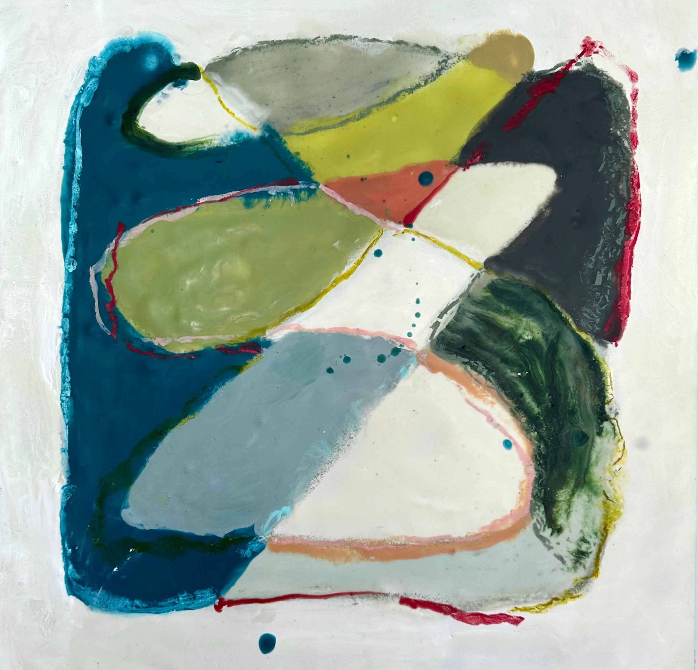 encaustic on wood in gold floating frame