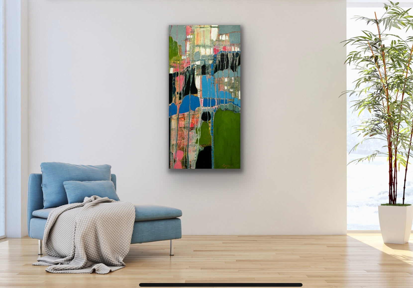 Suzanne absolutely loves color and patterns, and it shows in her work. She often uses an organic process of dripping and layering paint to achieve the effect she’s looking for. Her inspiration comes from the landscapes and people around her. She considers her work as an ongoing exploration, endeavoring to portray the natural and cultural world and those who live in it as strangely beautiful -- yet enormously fragile. Suzanne recently moved back to Virginia from Champaign, Illinois where she met her husband and raised her two wonderful children. Her academic degrees include a landscape architecture degree with an art minor from Virginia Tech and a masters of landscape architecture from University of Illinois. She’s always loved to draw and paint, and when she decided to drop organic chemistry for drawing, and forestry for landscape architecture she knew the creative path was calling her home! She’s painted much of her life, and began exhibiting professionally in the Midwest over the past fifteen years. Now she looks forward to making connections on the East Coast. She happily lives outside of Charlottesville with her husband, her dog and cat, and her mom.