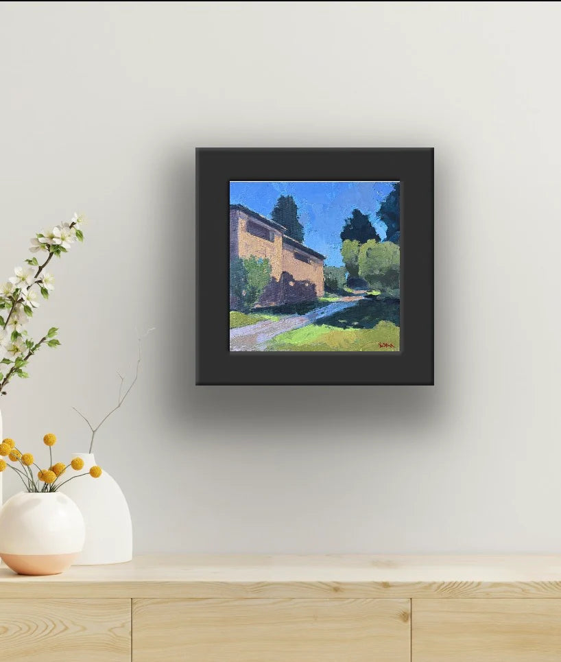 oil on linen panel, in black frame
