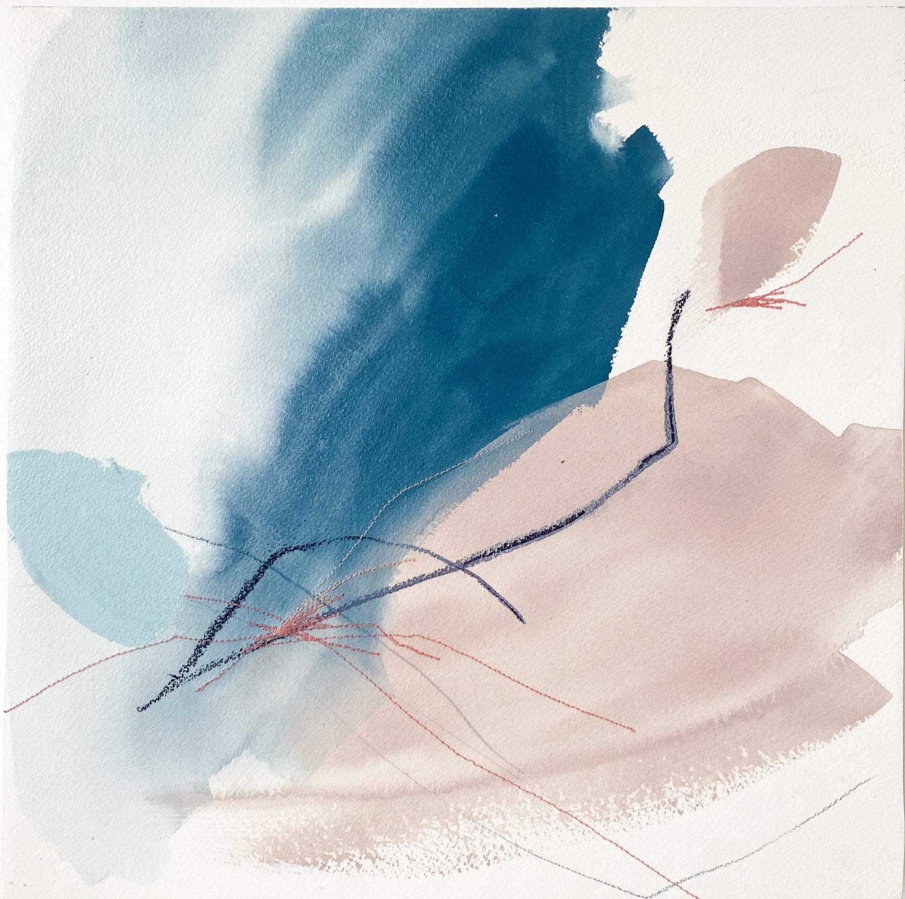 water, acrylic, thread on wood panel