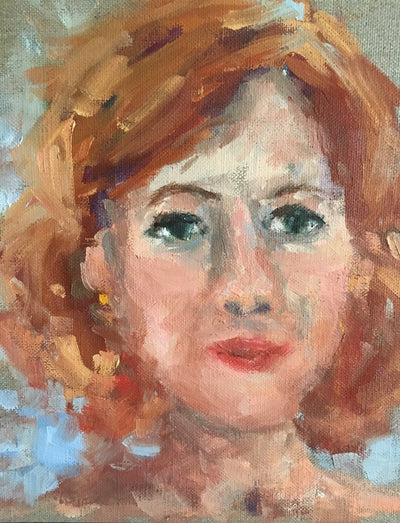 oil on linen board, framed in antique gold frame
