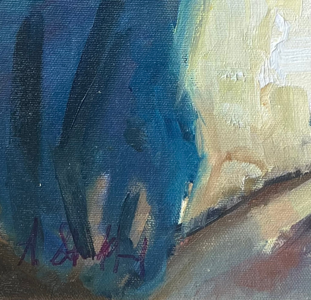 Anne Strickland lives in Atlanta with her husband and her Jack Russell Terrier. Her southern landscapes and rich seasons feed her imagination and love of color. Influenced by her mother, who was also an artist, Anne grew up in a rich, artistic environment. She passed along this bloodline to her daughter who is an accomplished designer and painter in Los Angeles. Anne’s method reveals a strong influence in Russian impressionism along with a hint of expressionistic style. Her paintings transform the mundane into brilliant shapes of light and shadow. She accomplishes this by establishing a strong abstract design under every painting. It is this method that helps establish a fresh moment of surprise.She received a Bachelor of Arts from the University of North Carolina at Chapel Hill, a Masters of Arts in History from the University of Georgia, and a Masters of Psychology from Emory University.Her work has been placed in private homes and businesses as well as galleries across the nation.