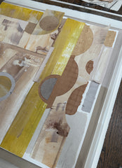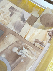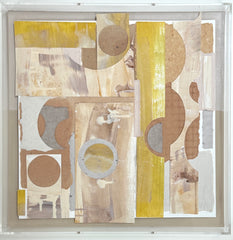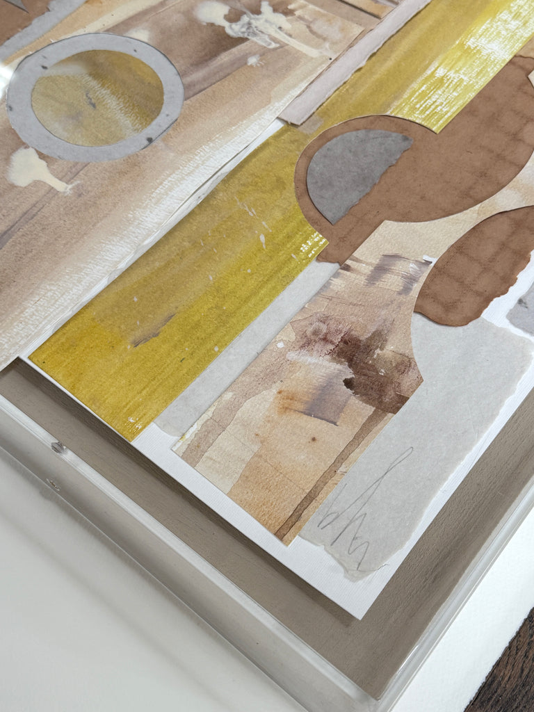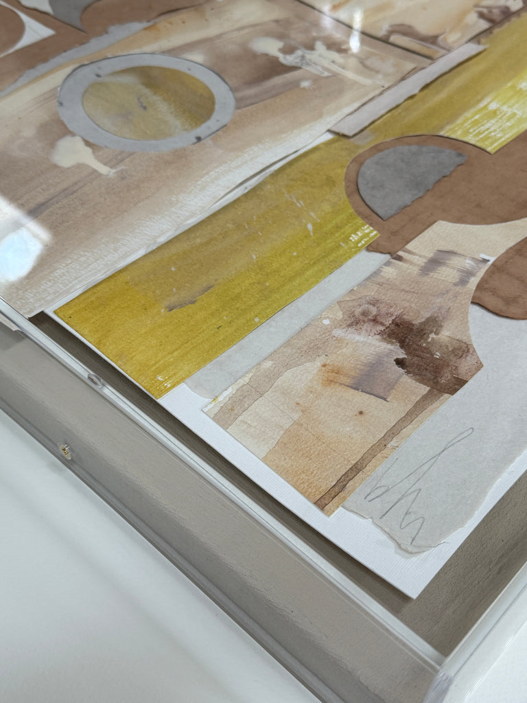 mixed media collage, in lucite shadowbox frame