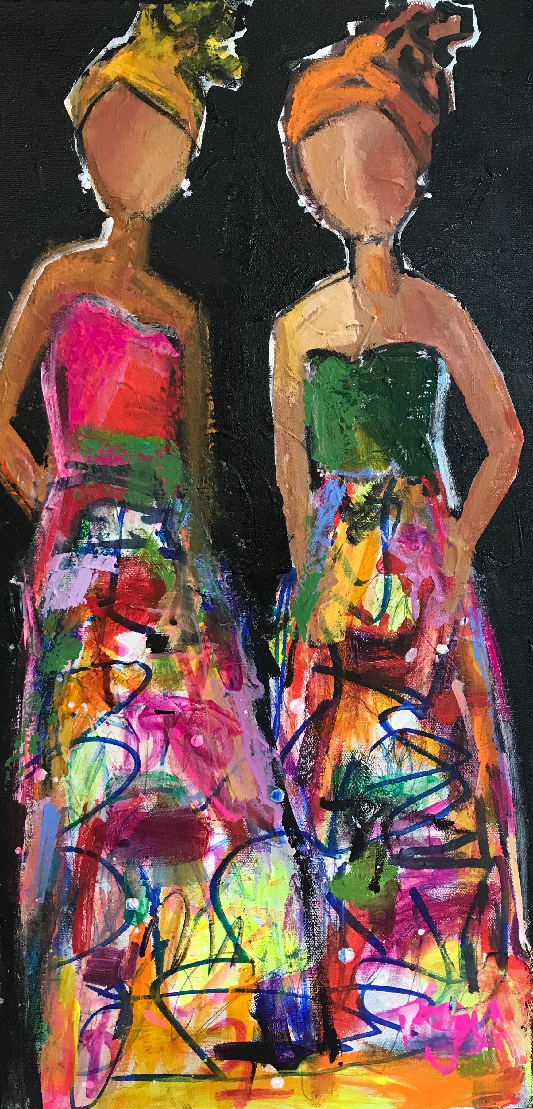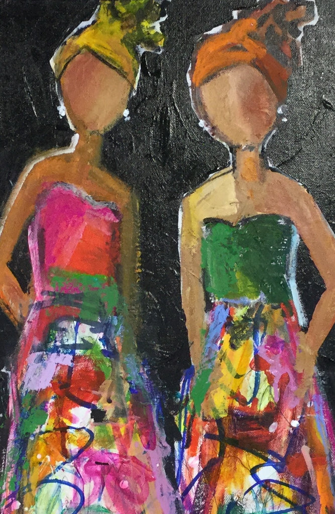 Page Morris picked up a paintbrush in third grade and never looked back. Largely self-taught, her client list reaches as far as Canada and includes syndicated columnist Kathleen Parker. Galleries representing her work include: Verve and Over the Mantle in Columbia, SC; Grand Bohemian Gallery in Charleston, SC and One Kings Lane. "My subject matter is women who are feminine, colorful, playful, strong, and beautiful. I use paper, pencil, markers, oil sticks, and paint to achieve a multi-dimensional look. I love texture because the viewers see even more when they stop to take a second look. I adhere to a rigid schedule of painting each day. Creativity only happens if I'm hard at work in my studio. I love what I do and hope my viewers can see that. It's a joyous experience to pick up a paintbrush. It's what I do and what I am."