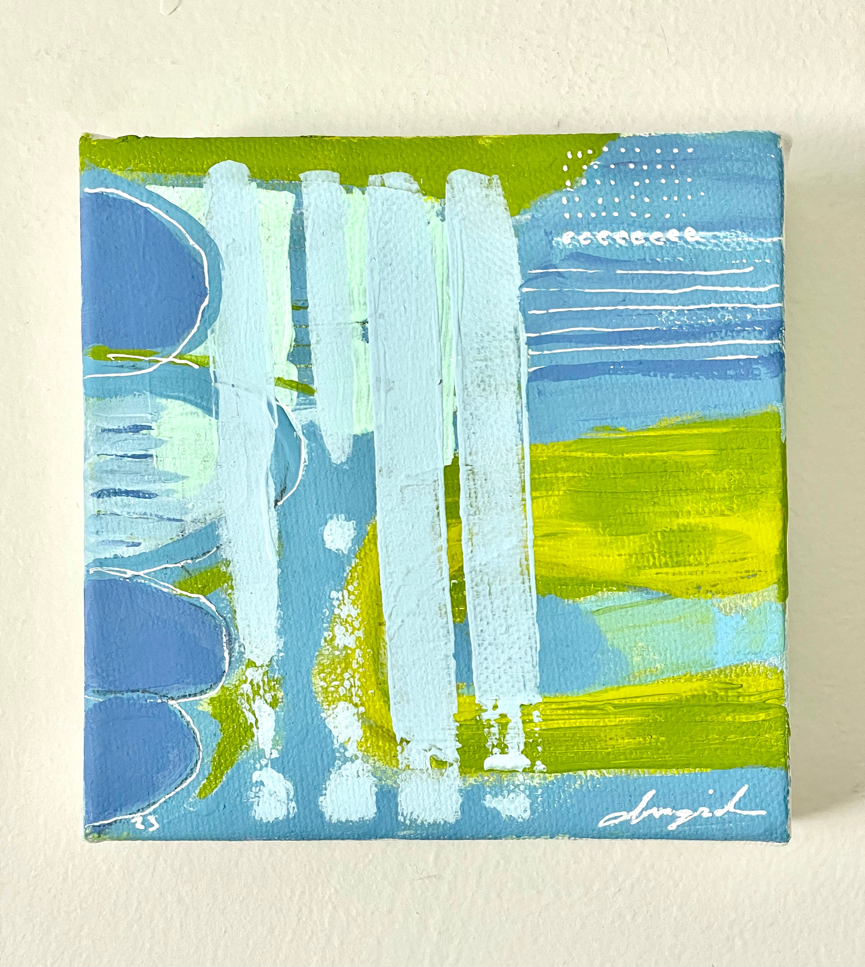 Ingrid’s contemporary art is an unexpected mix of various materials in arrangements of linear planes of bright colors and complexity. Her artwork is inspired by the clean lines of her Scandinavian upbringing, the bright colorful influences of her lifelong love of the ocean and her participation in the urban subculture of NYC in the 80s. She received her formal art education at The School of Visual Arts in NYC, while her free form street art evolved in the explosive vibrant Rivington School art scene on the Lower East Side of Manhattan. Her work has been in numerous NYC galleries and shows in NYC on the 80s. Ingrid also studied at Pepperdine University, Tyler School of Art in Rome, intensive studies in London, and fine art classes while living on an island in Finland for 7 years. A mother of two and all avid surfers, she enjoys time with her family and stays involved with The Surfrider Foundation, a non-profit environmental organization protecting waters and beaches. Her pieces bring light and life into any space.