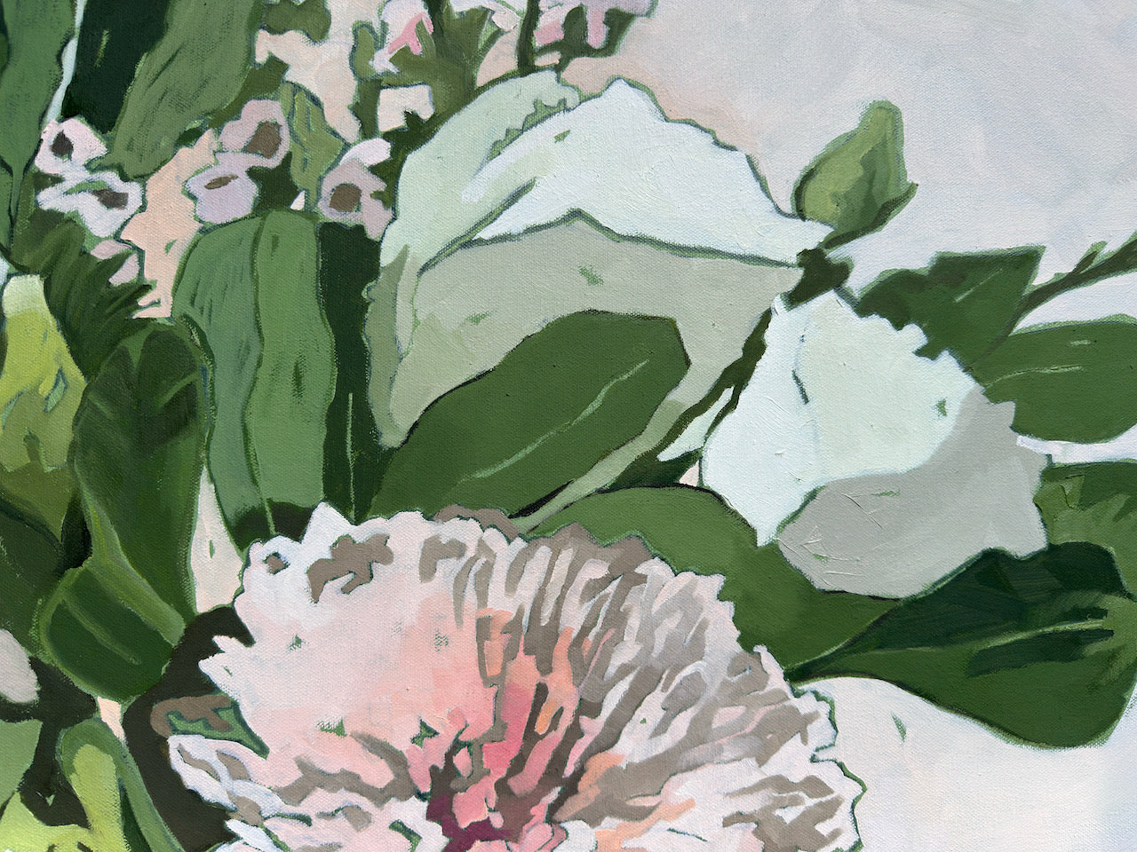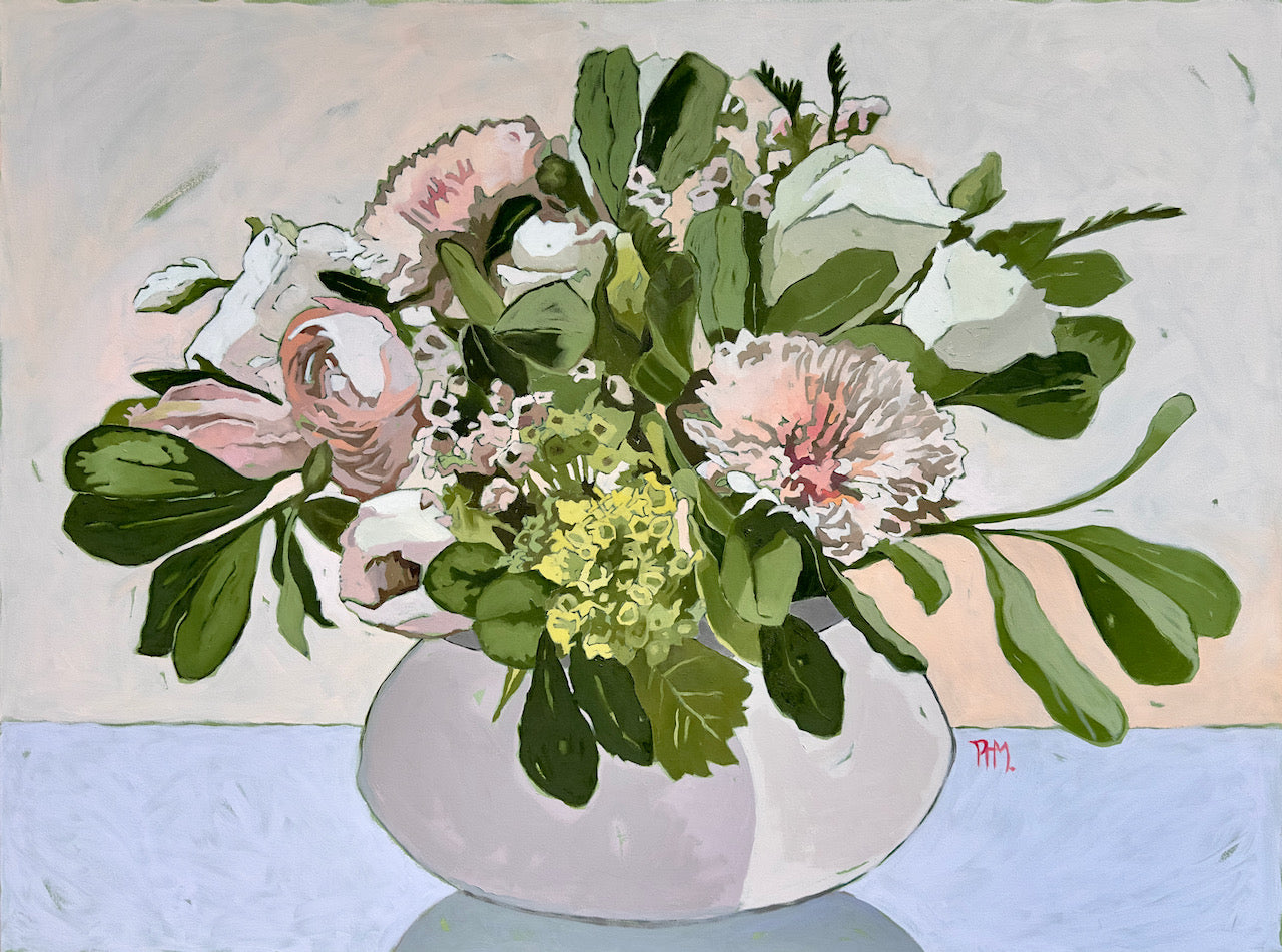Pamela’s intention as a painter is to speak to the elegance of place and object; to use paint as a means to capture an image and then to reduce the noisy elements in landscape, botanical or interior subjects, by breaking down busy images into an economy of shape and hue. “I love a quiet place. I love to have the brain space to allow my mind and my eyes to soak in the images of my world. In the same manner, the image I want to paint must also speak to my need for simplicity and peace. Our world is a busy, loud and cluttered place. I can paint those elements out, leaving only lovely positive and negative shapes, made with colors that love to be together...” Painter and avid gardener who is fascinated with color, inspired by music, good reads and lessons to learn, Pamela works from her studio with windows that let in the woods of Northeast Georgia, where she lives with her husband Van, dog Tuck and friendly wildlife.