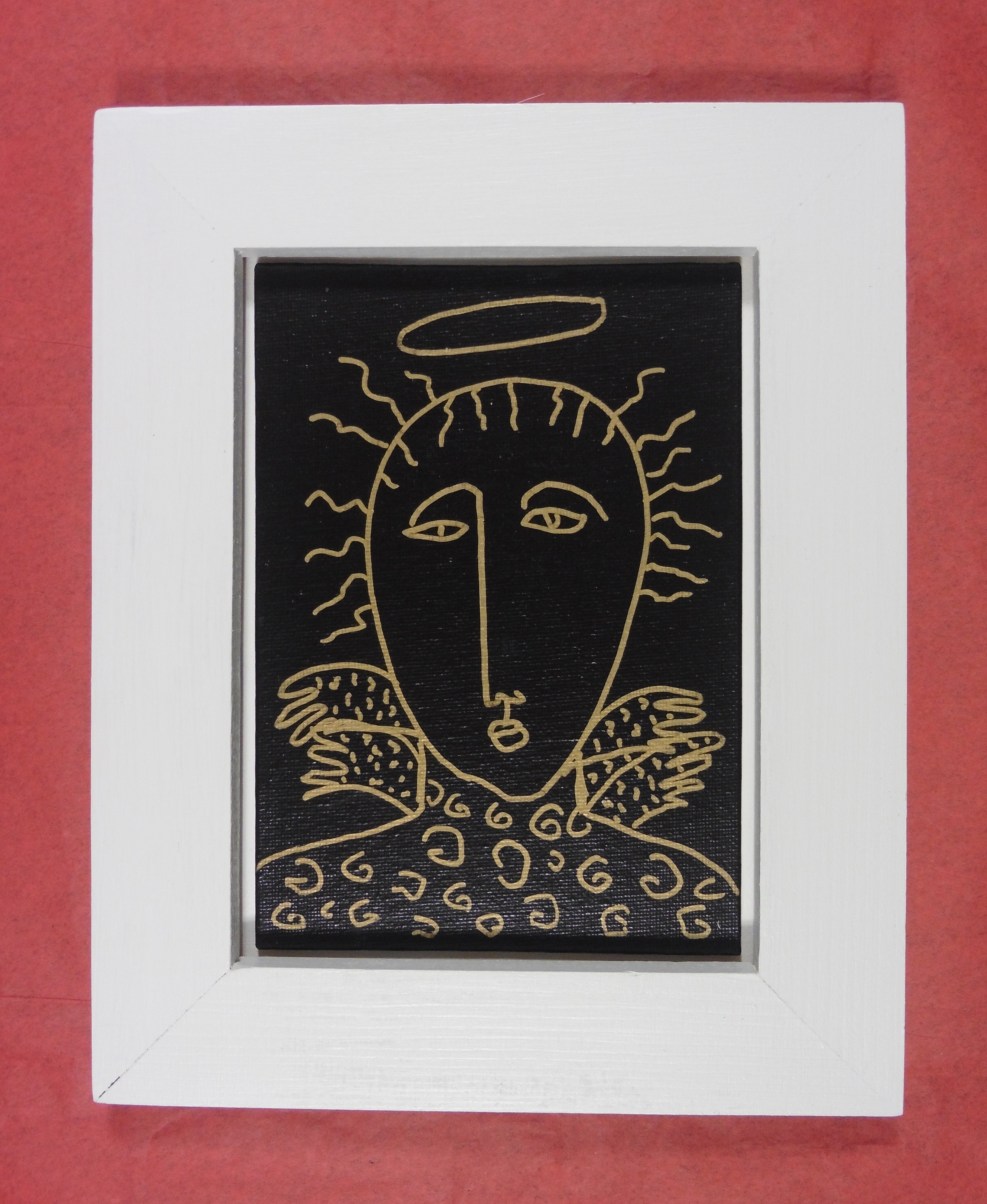 acrylic on canvas panel, in white wood frame