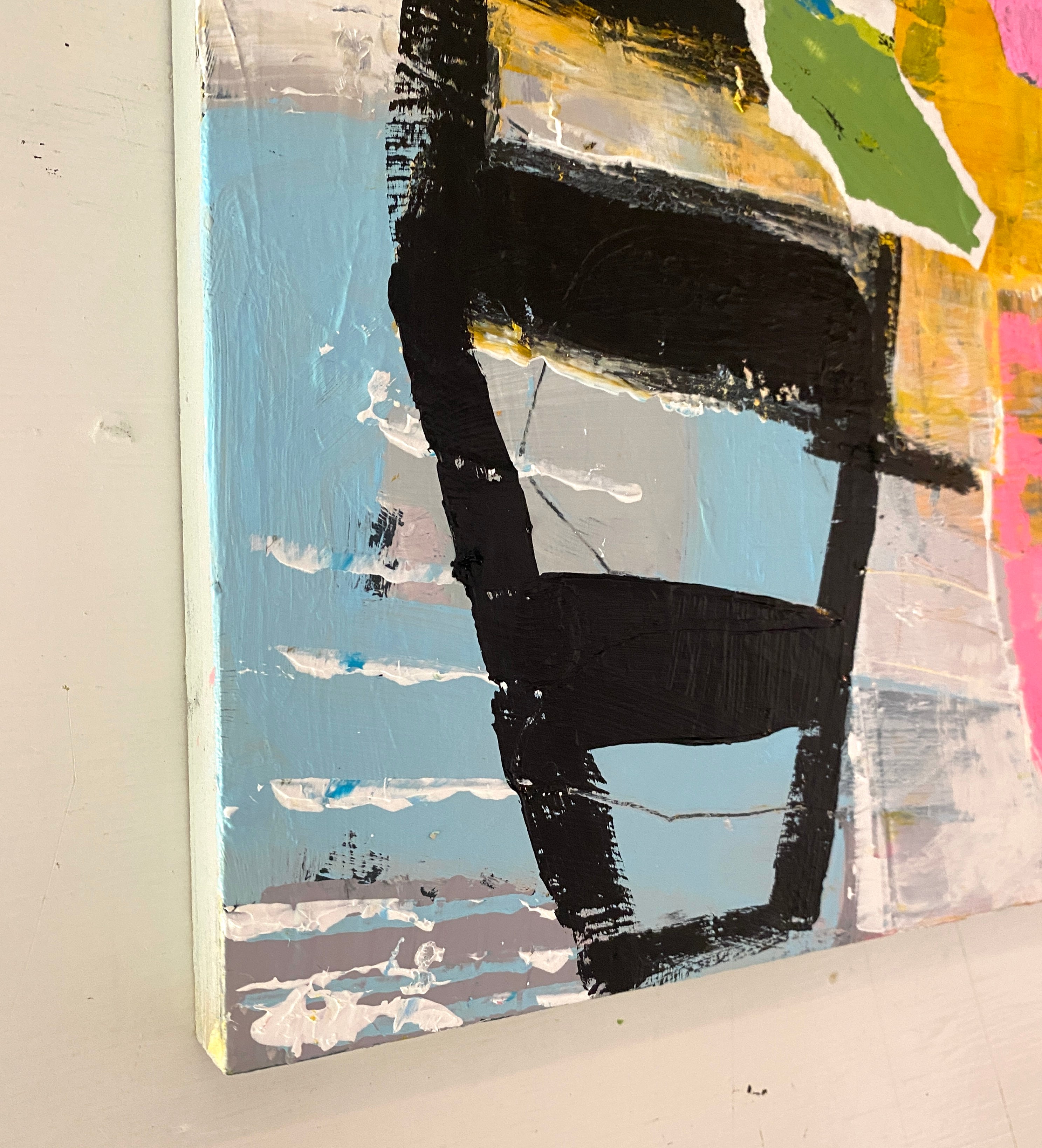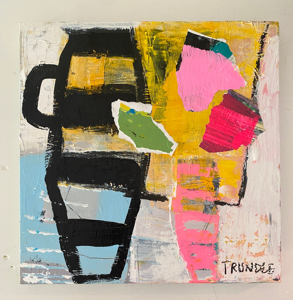Sarah Trundle is a Charlottesville, Va. painter working primarily in abstraction. Decisive mark-marking, bold, geometric shapes, and a simplicity of form, line, and color, are the hallmarks of Sarah's paintings. She sees every painting as a constantly evolving and shifting process, often starting a piece without any fixed vision of an end product. Her approach is one of constantly obscuring and re-defining, of ongoing layering, scraping, covering, wiping, scratching, and generally moving paint and materials around to ultimately achieve the final balance of shape and color that gives her that "aha" moment.