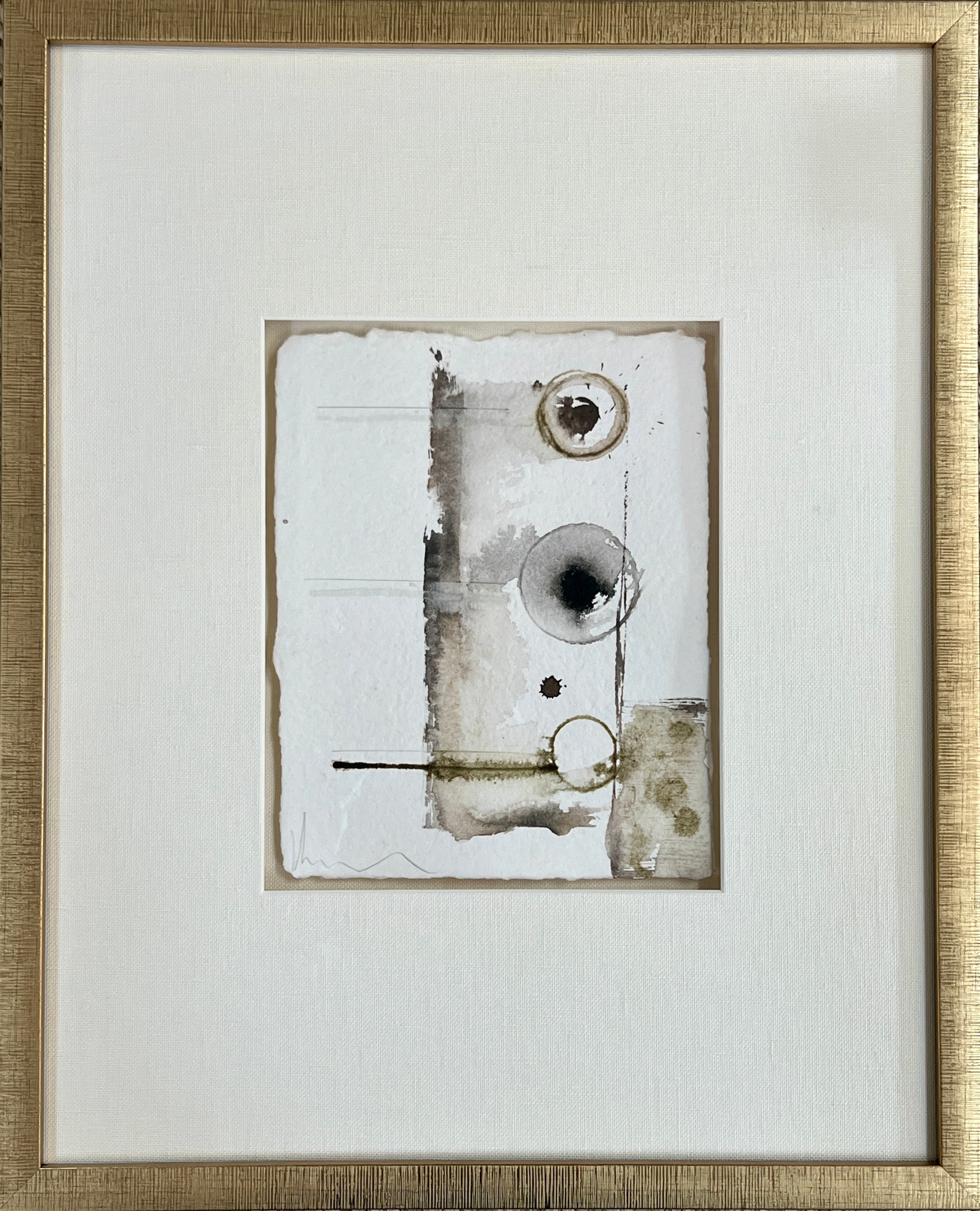 acrylic and handmade paper, in linen mat and gold frame