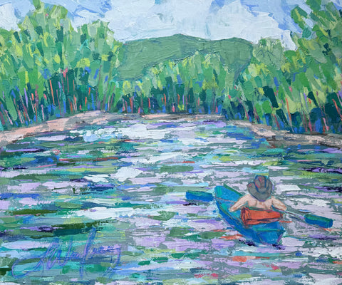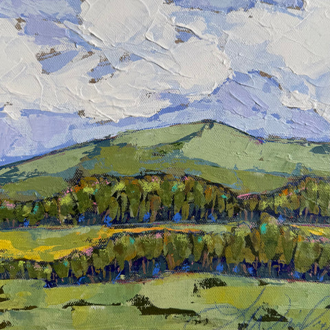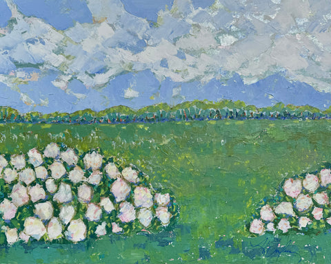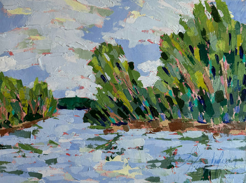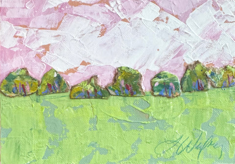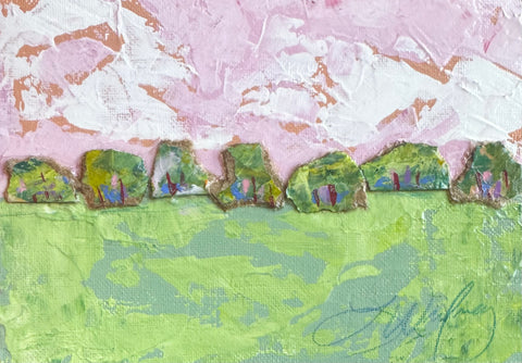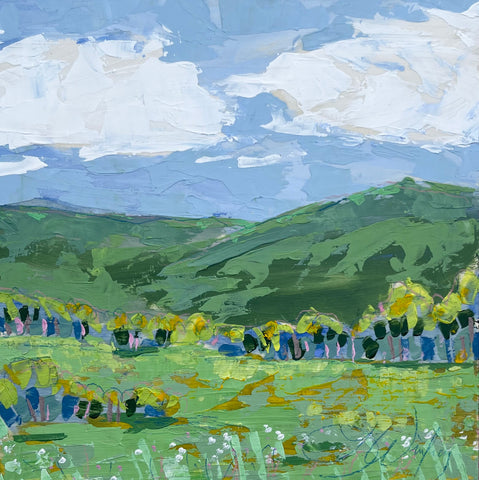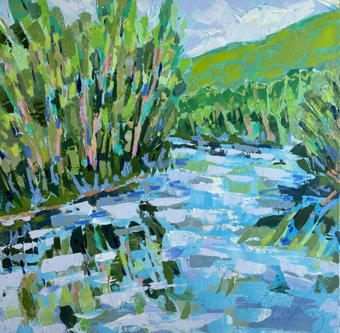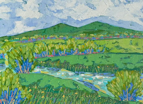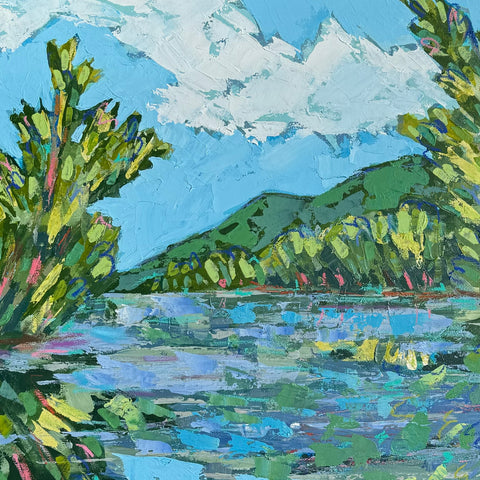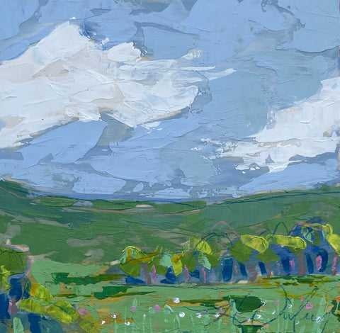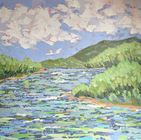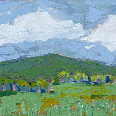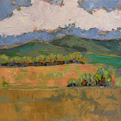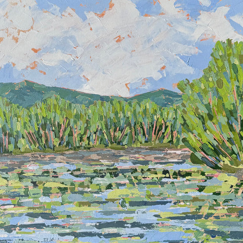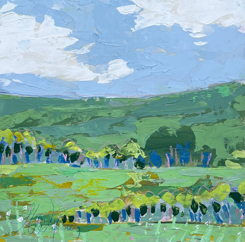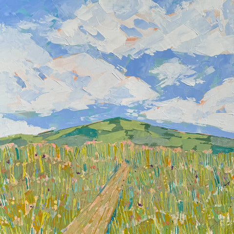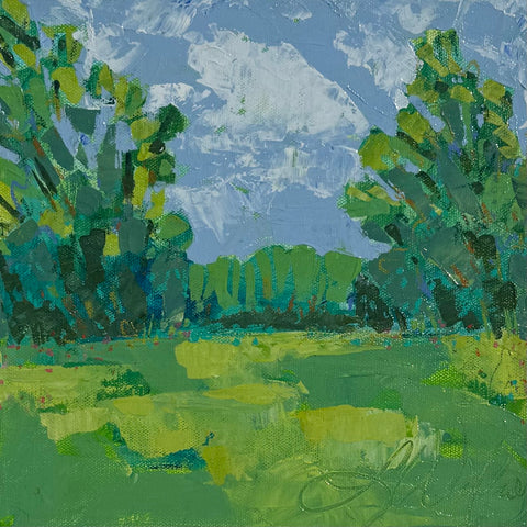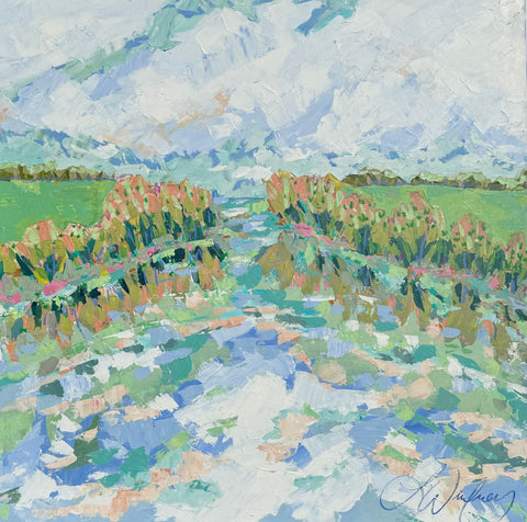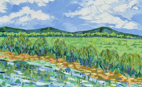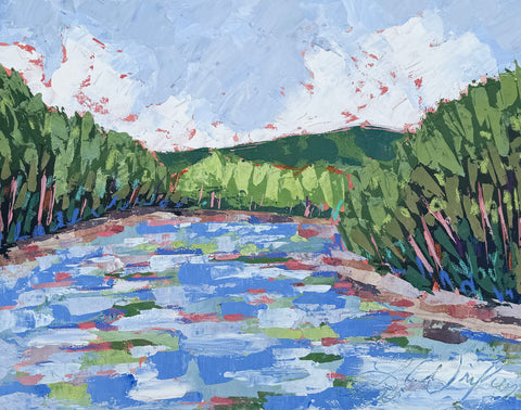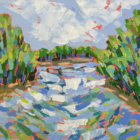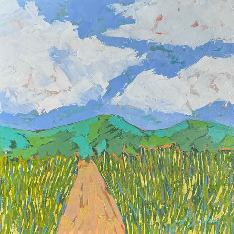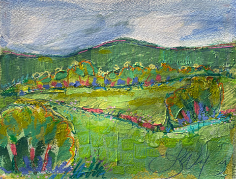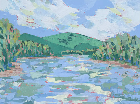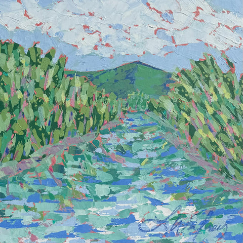 Lindsey’s paintings are an escape and journey - a time to relish the process of creativity: the brush strokes, the layers, the juxtaposition of colors. She works primarily with acrylic paints for their intensity of color and the ability to layer and create textures with various acrylic mediums and gels. A native of Lynchburg, Virginia, Lindsey’s landscapes generally focus on special places that she has known all her life, including fields at the foot of the Blue Ridge Mountains and the pristine beauty of the Cowpasture River. Working from onsite sketches and photographs, she mixes observations with her own personal memories and feelings of how she perceives a place. In addition to being an artist, Lindsey is a full-time art educator, wife, and mother of two young children.