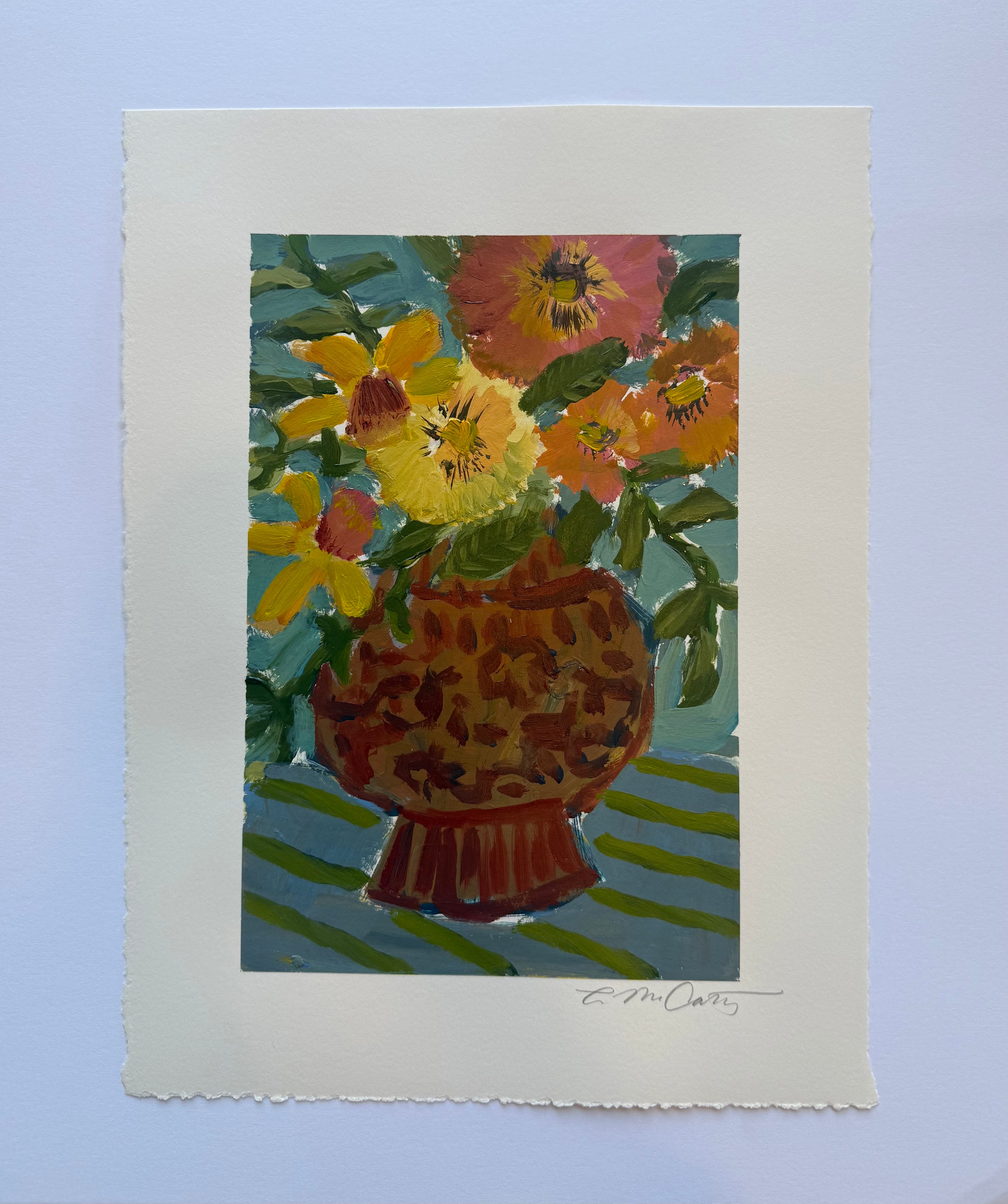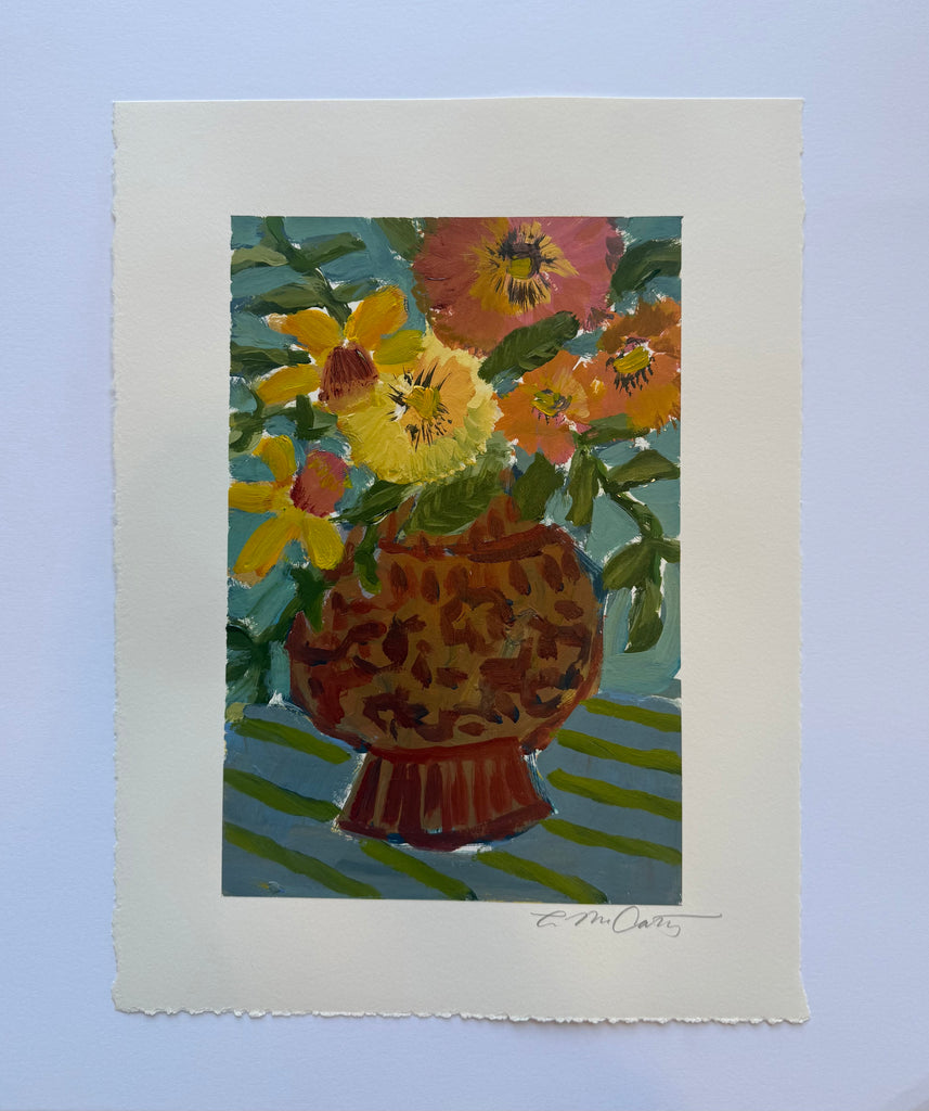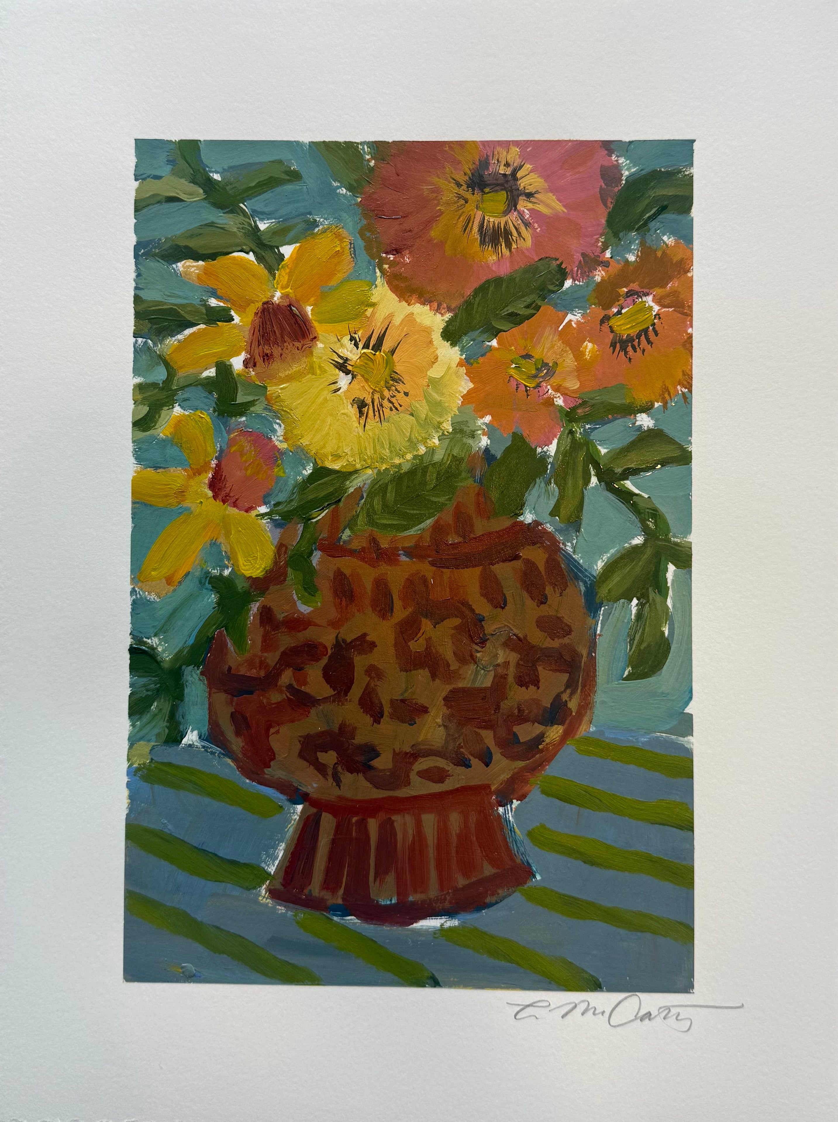 Born and raised in Georgia, from a young age, Laura developed a deep love for an array of creative outlets. Design, painting and florals have played a huge part in her life. Laura attended Auburn University and earned a Bachelor’s degree in Graphic Design. Laura’s abstract style is inspired by unique color combinations, gestural marks and texture. No matter the subject, she hopes that her work will be a tangible representation of a special time or memory. Laura lives and works as a full-time freelance designer and artist in Florida. Most days you can find her at home with her husband, Mark, wrangling their children. Her main source of inspiration lives in her three children, Miller (6), Stockton (4), and baby brother Greer (2).