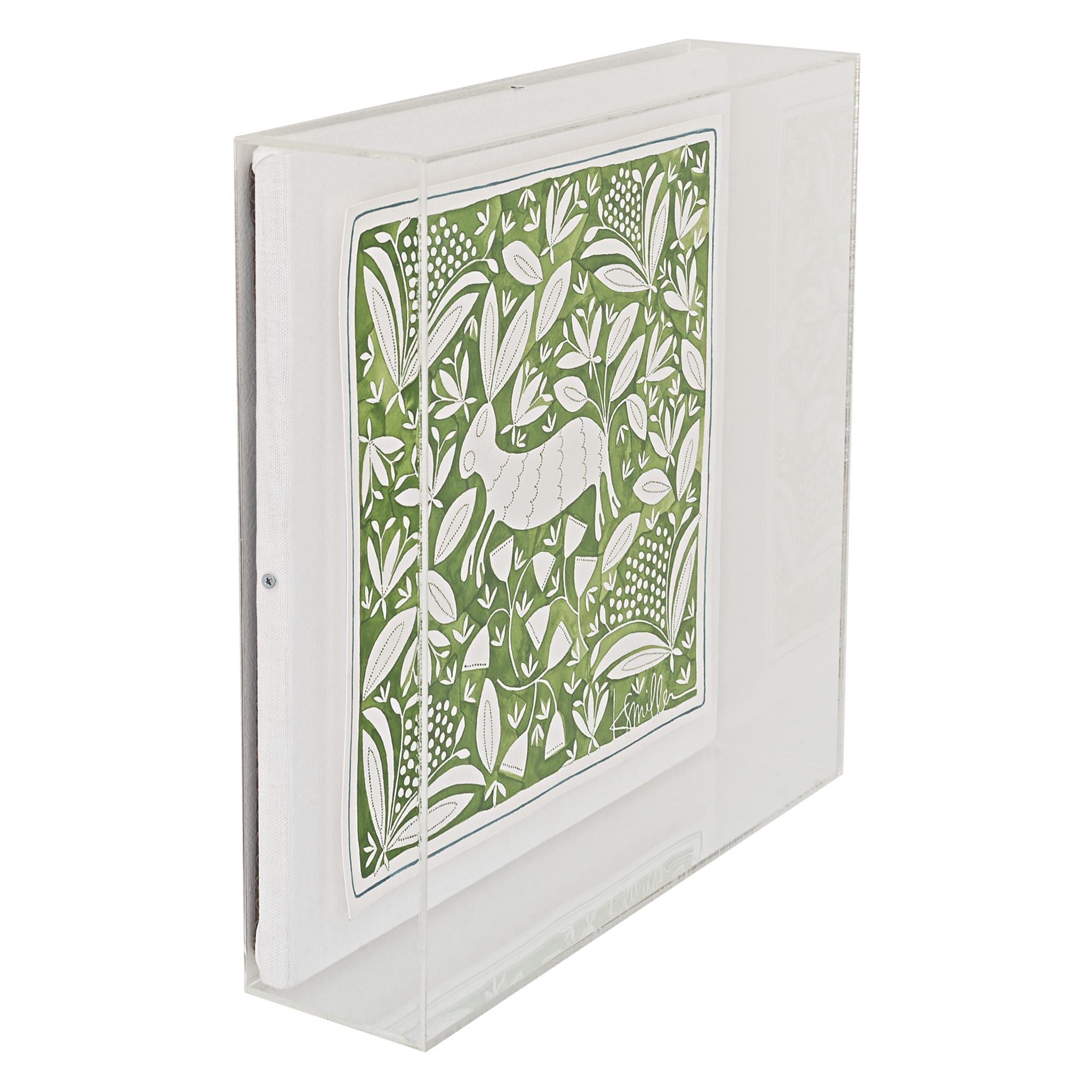 watercolor on paper, floating on white linen, framed in acrylic shadowbox frame