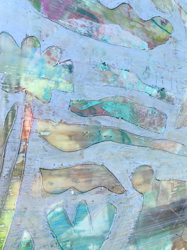 Margaret Meredith is an abstract painter working in acrylic and mixed media. Her work explores emotional atmosphere through layered surfaces, intuitive mark‑making, and a palette that balances moody, muted tones with moments of vivid color. Her recent work builds on botanical themes first explored in 2023, suggesting organic growth and memory rather than literal representation. Alongside this, Meredith has created minimalist, encaustic-medium, and collage‑based works that continue to inform her layered approach. Currently, she is focused on acrylic painting, embracing its fluidity and the freedom to work with water. Pencil marks, printed elements, stencils, and hand‑made tools play an ongoing role in her process, reflecting her love of printmaking and experimental mark‑making. Margaret Meredith lives and works in Columbus, Georgia, with her husband, a woodworker and mushroom farmer, and their two sons.