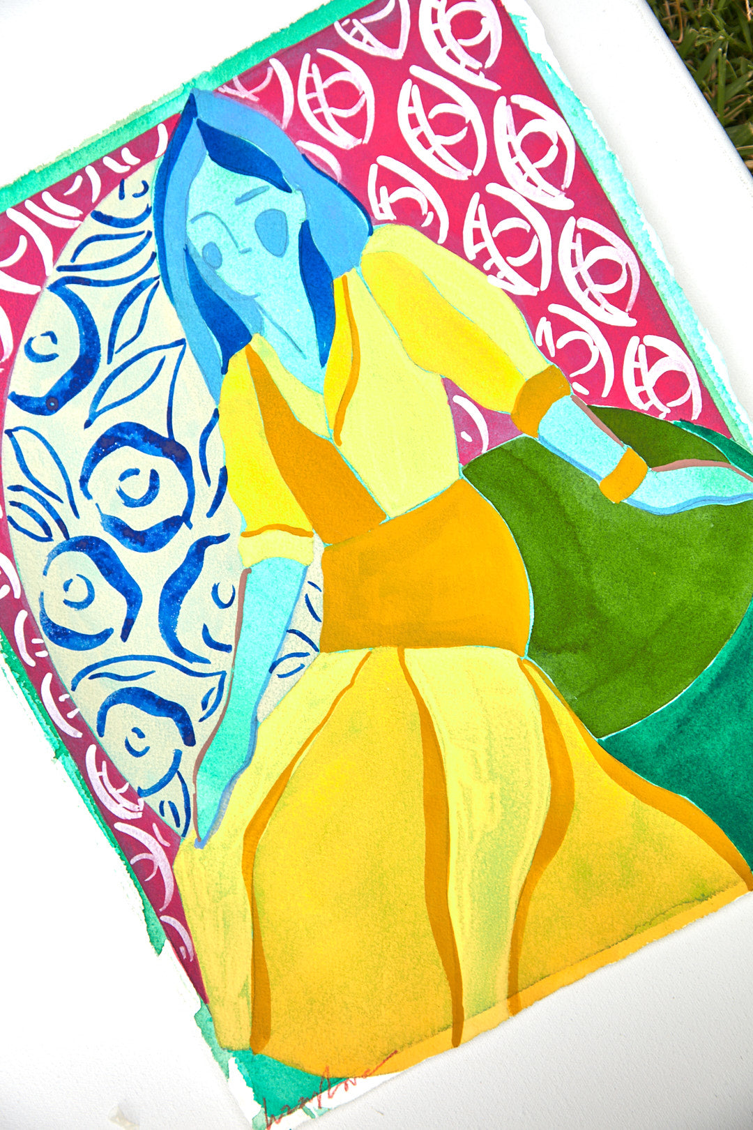 My name is Lizzy Love and I'm an artist in Nashville, TN. I create figurative works on canvas with acrylic paint and papers with watercolor and gouache. This body of work has been a rebirth for me creatively. While I've been painting full time for the last 5 years, I feel like I've really come into myself creatively with my figurative paintings. Born out of a time of uncertainty and lots of questioning, I was pushed to dig deep and get back to basics. I decided to switch gears from painting the landscapes, for which I had been primarily making for years. As an effort to get my creative spark back, I started sketching figures from magazines, a subject I hadn’t explored in a long time. Over many months they slowly evolved into what they have become; starting from detailed and realistic, to more abstract and modernist. I am a big believer that the environment of your home shapes your attitude, and for that reason I love interior design. That love is what led me to start incorporating furniture / interior surroundings / and patterns into the pieces. I pull apart and put back together the lines and shapes of many of my favorite interiors, and place them amongst the figures in a dynamic way. These ladies embody many things - community, respect, femininity, reverence. They are a way to draw attention to what being a woman entails. Many times it means being fierce and strong. Many times it means leaning on and drawing your strength from friends that are like family. While creating each piece, I draw upon the love and reverence I have for all the women in my life; the women who have shaped me, lifted me up when I needed it, laughed with me, and inspired me.