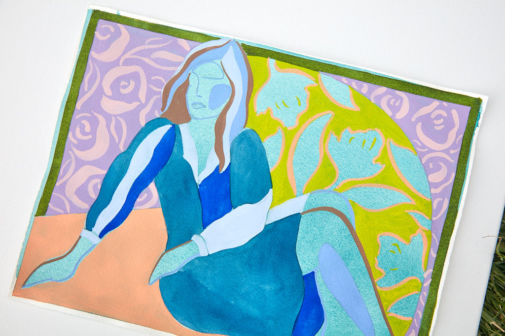 My name is Lizzy Love and I'm an artist in Nashville, TN. I create figurative works on canvas with acrylic paint and papers with watercolor and gouache. This body of work has been a rebirth for me creatively. While I've been painting full time for the last 5 years, I feel like I've really come into myself creatively with my figurative paintings. Born out of a time of uncertainty and lots of questioning, I was pushed to dig deep and get back to basics. I decided to switch gears from painting the landscapes, for which I had been primarily making for years. As an effort to get my creative spark back, I started sketching figures from magazines, a subject I hadn’t explored in a long time. Over many months they slowly evolved into what they have become; starting from detailed and realistic, to more abstract and modernist. I am a big believer that the environment of your home shapes your attitude, and for that reason I love interior design. That love is what led me to start incorporating furniture / interior surroundings / and patterns into the pieces. I pull apart and put back together the lines and shapes of many of my favorite interiors, and place them amongst the figures in a dynamic way. These ladies embody many things - community, respect, femininity, reverence. They are a way to draw attention to what being a woman entails. Many times it means being fierce and strong. Many times it means leaning on and drawing your strength from friends that are like family. While creating each piece, I draw upon the love and reverence I have for all the women in my life; the women who have shaped me, lifted me up when I needed it, laughed with me, and inspired me.