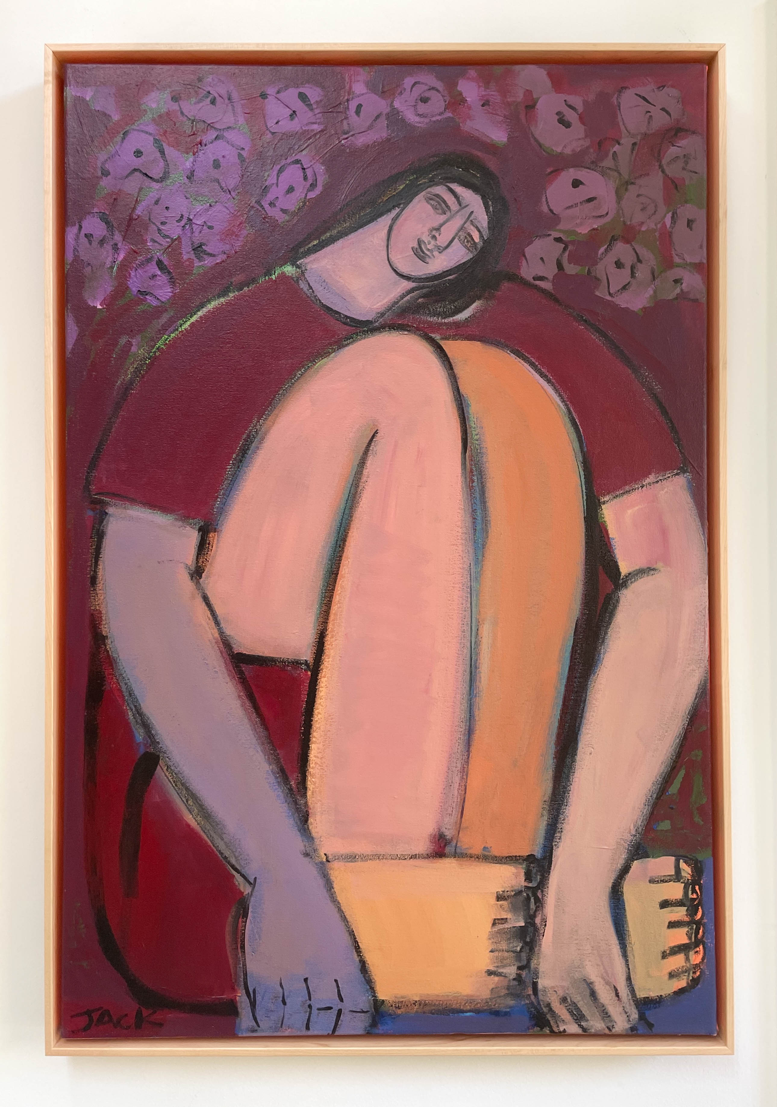 An intuitive artist, Rebecca Jack, paints vibrant figurative works that highlight the beauty of imperfection through visible layering, expressive brush work and mark making. Her figures are boldly unapologetic yet exude a quiet confidence and self-reflective quality. Originally from Knoxville, Tennessee, Jack grew up in an artistic household where she has been painting and drawing all her life. She received her bachelor’s degree at the University of Tennessee in Interior Design. Drawing from her love of design, Jack is inspired by color, pattern, shape and contrast. She is currently living in Atlanta with her husband and son.