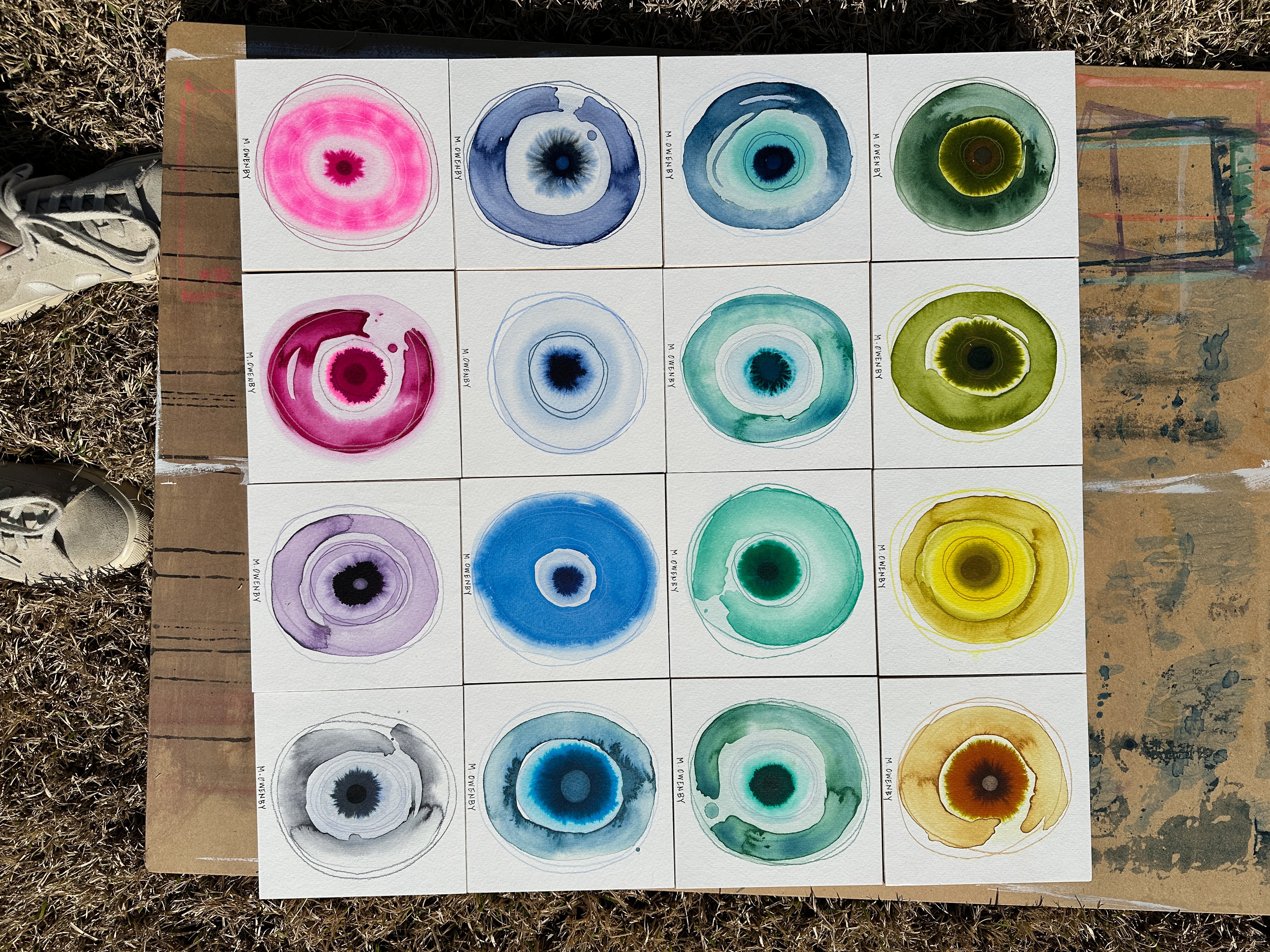 Michelle was born in Asheville, NC with a deeply rooted “maker” heritage. She developed a love of art, nature, travel + spirituality which greatly inform the foundation of her work. Influenced by her mother + grandmother, she has been using her hands + imagination since she was a child to create artful objects. Her work often reflects colors + patterns found in nature where she spent much of her childhood with her dad, who was an avid-outdoorsman. She enjoys a clean, abstract aesthetic using mainly water-based mediums, paper + natural fibers. In almost all of her work you will see her intrigue with the opposing forces of dualism. Her works are spiritual + reflective outpourings that she tries to nurture daily. Faith + family are her highest priorities so, she works from her home studio in Sullivan’s Island, SC where both peaceful + joyful inspiration are found. She resides there with her beloved husband, 2 loving teenage boys + their lazy yellow lab. Her work has been seen throughout the Southeast + licensed in worldwide markets.
