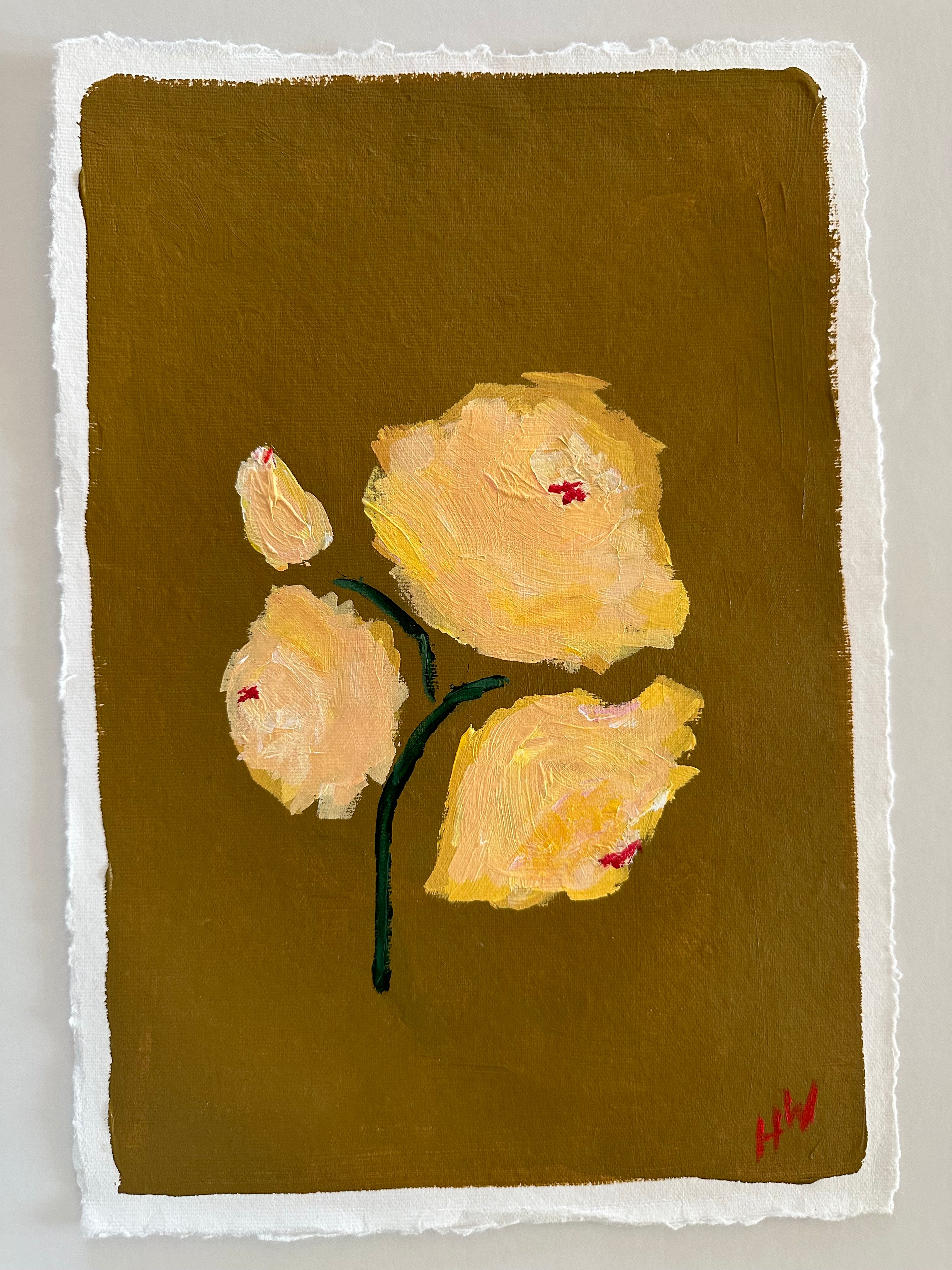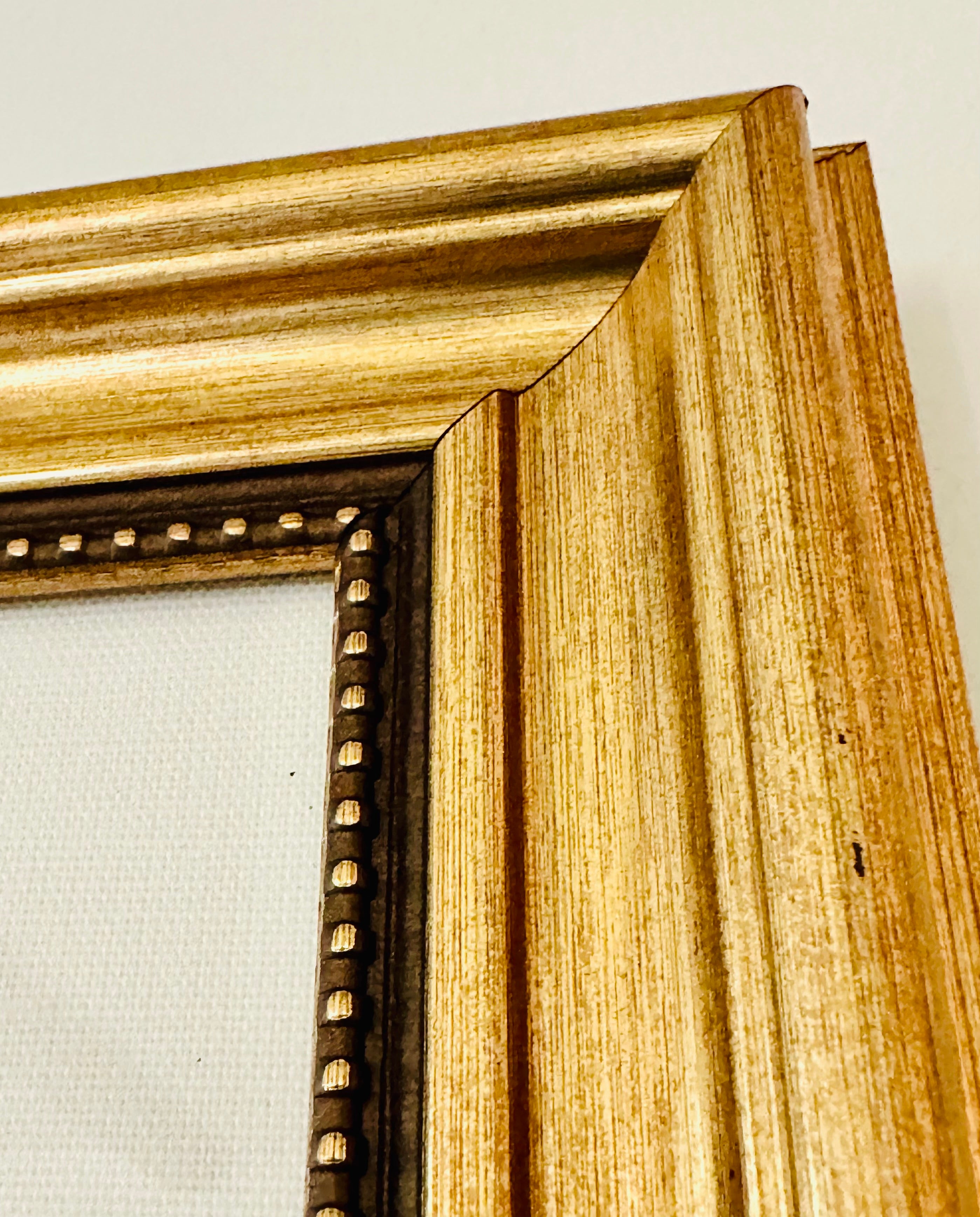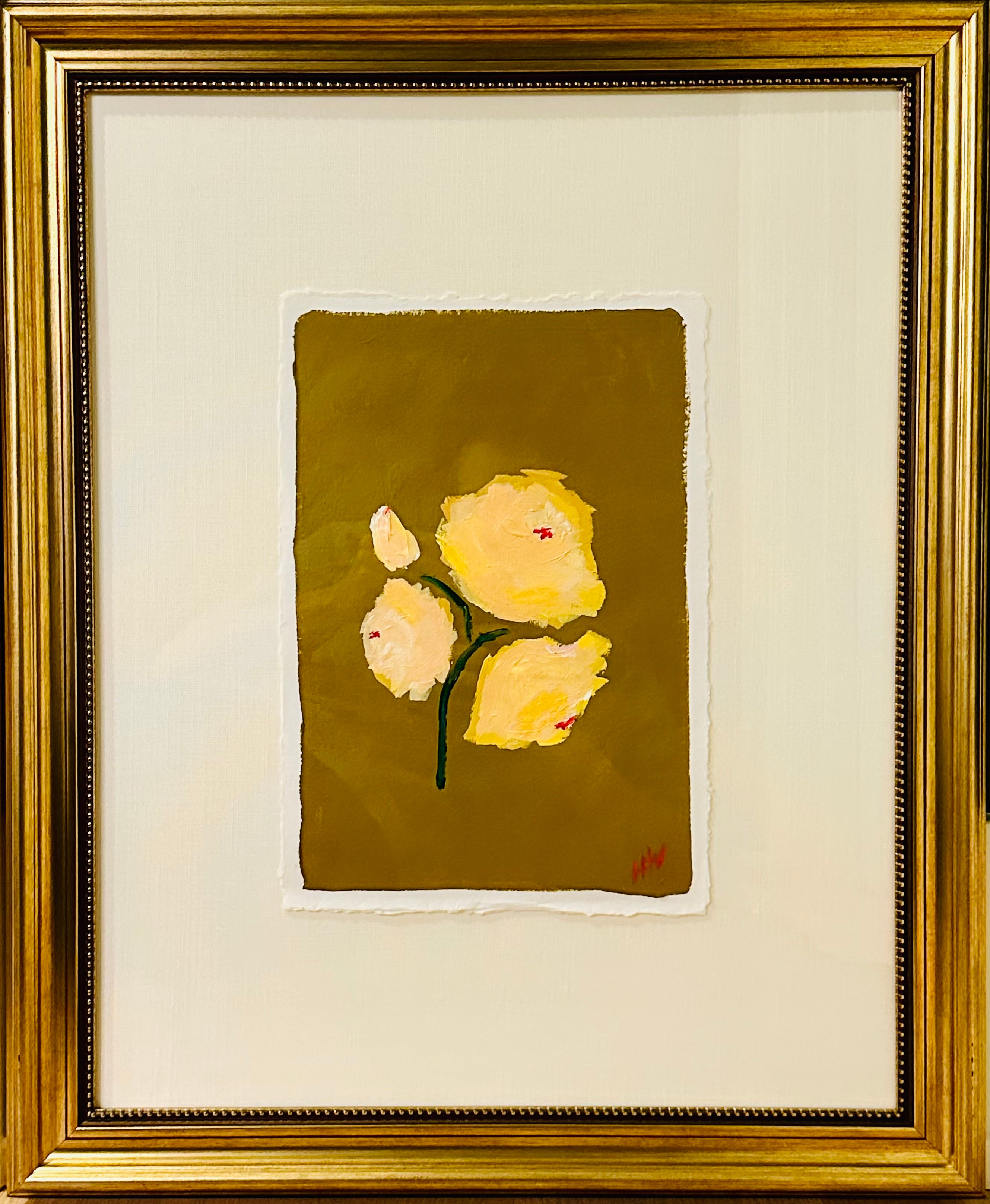acrylic on deckled edge paper, in white linen mat and gold frame