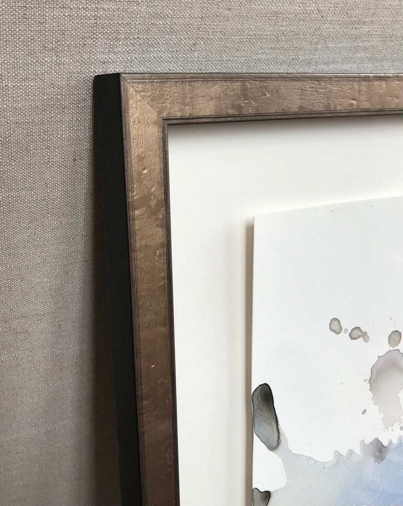 acrylic on heavyweight white paper, in textured pewter frame and ivory mat