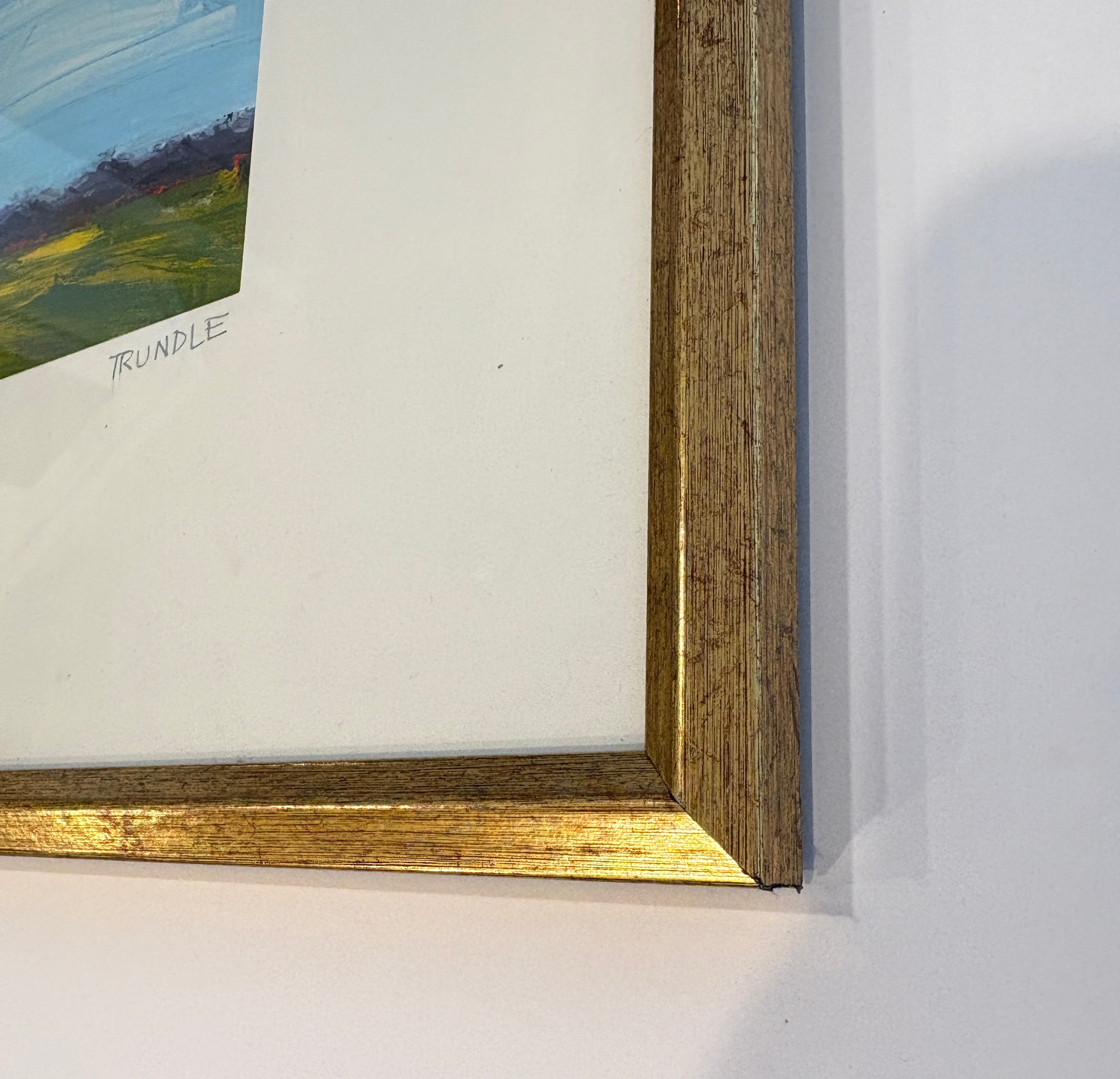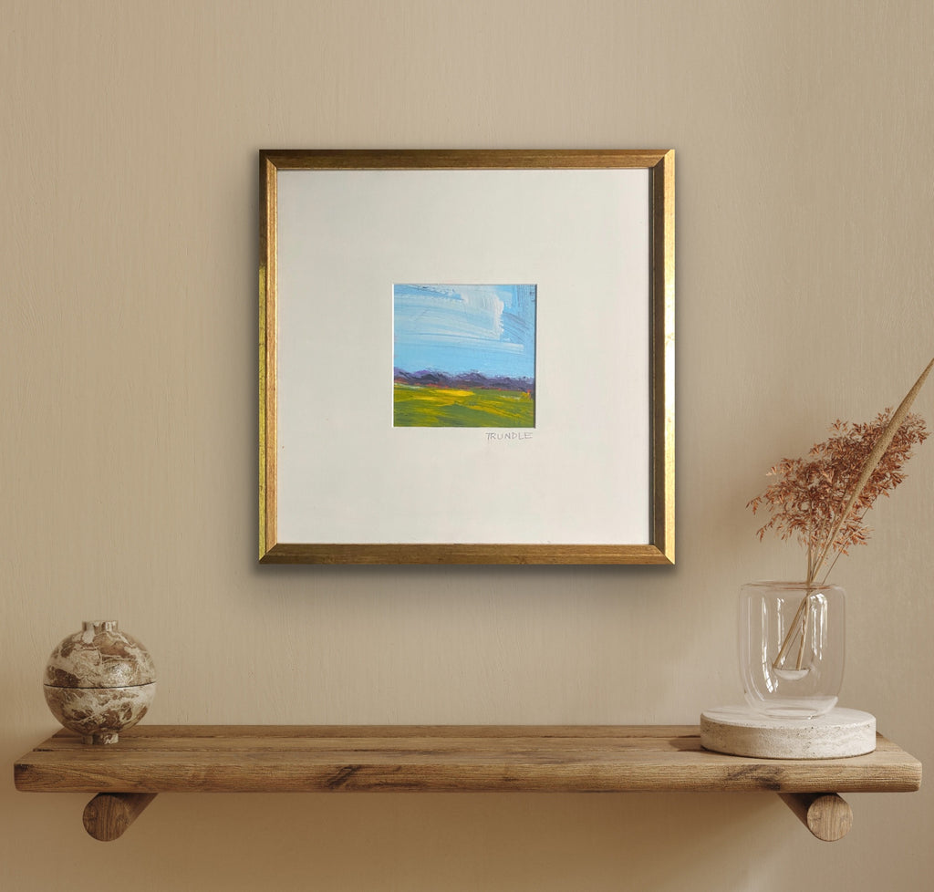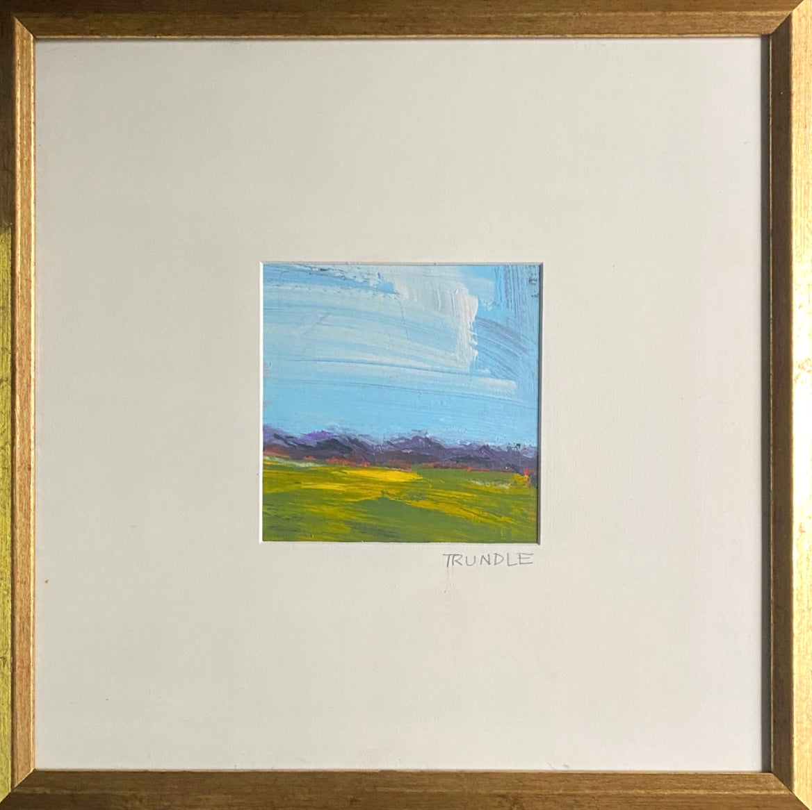 Sarah Trundle is a Charlottesville, Va. painter working primarily in abstraction. Decisive mark-marking, bold, geometric shapes, and a simplicity of form, line, and color, are the hallmarks of Sarah's paintings. She sees every painting as a constantly evolving and shifting process, often starting a piece without any fixed vision of an end product. Her approach is one of constantly obscuring and re-defining, of ongoing layering, scraping, covering, wiping, scratching, and generally moving paint and materials around to ultimately achieve the final balance of shape and color that gives her that "aha" moment.