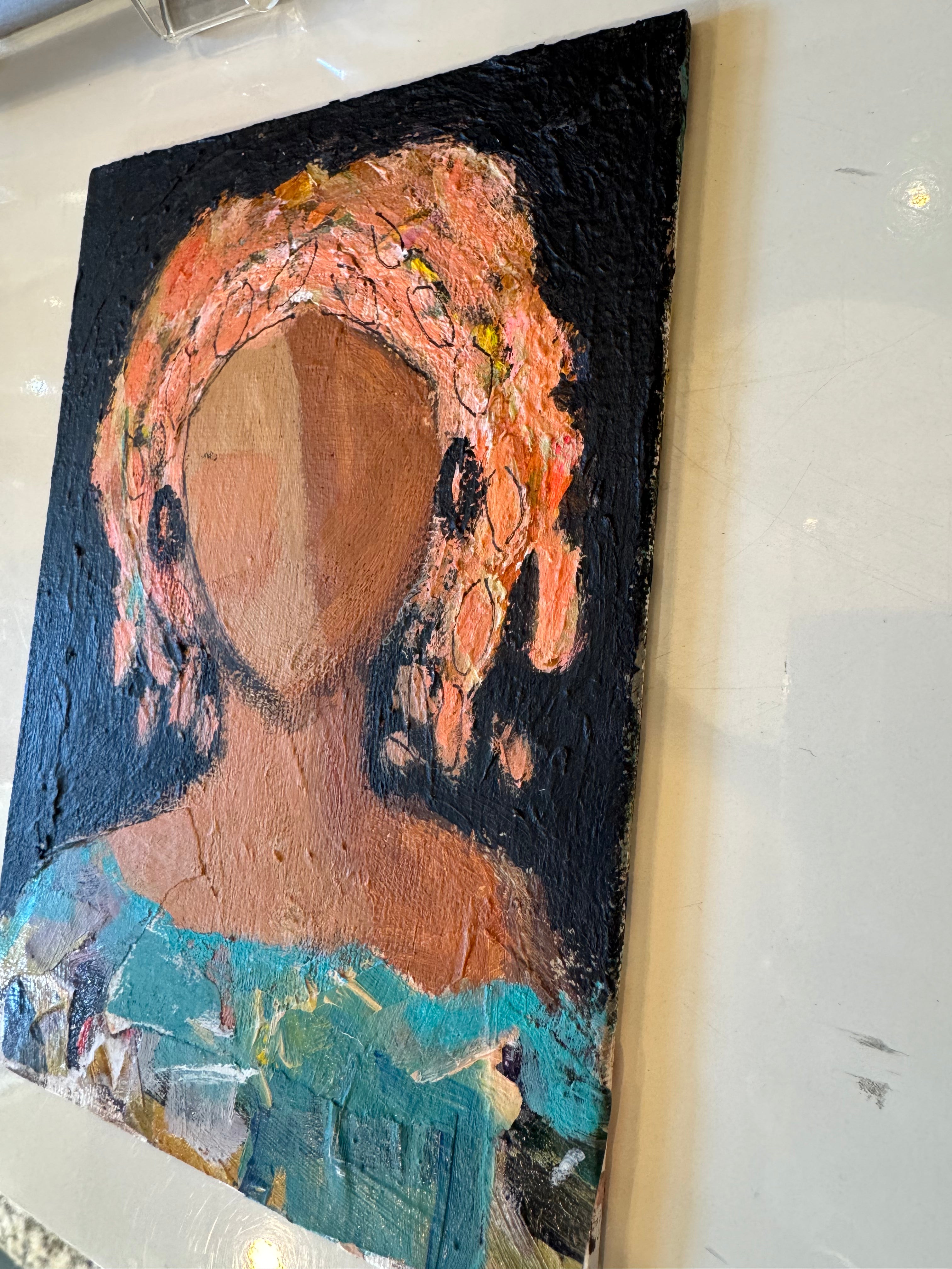 Page Morris picked up a paintbrush in third grade and never looked back. Largely self-taught, her client list reaches as far as Canada and includes syndicated columnist Kathleen Parker. Galleries representing her work include: Verve and Over the Mantle in Columbia, SC; Grand Bohemian Gallery in Charleston, SC and One Kings Lane. "My subject matter is women who are feminine, colorful, playful, strong, and beautiful. I use paper, pencil, markers, oil sticks, and paint to achieve a multi-dimensional look. I love texture because the viewers see even more when they stop to take a second look. I adhere to a rigid schedule of painting each day. Creativity only happens if I'm hard at work in my studio. I love what I do and hope my viewers can see that. It's a joyous experience to pick up a paintbrush. It's what I do and what I am."