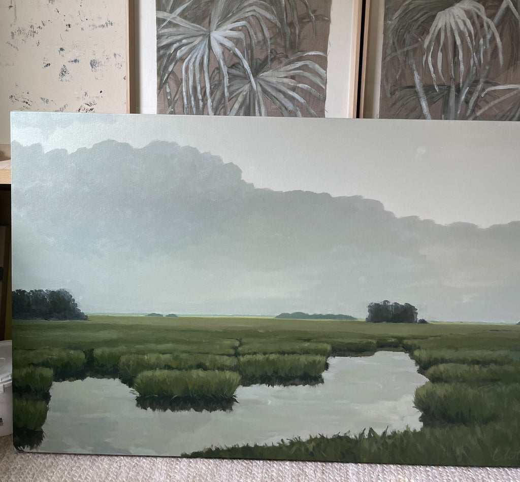 Christine hopes to create artwork that strikes the balance of fun and timeless, in an effortless manner. Composition and color harmony are a distinctive part of her work. Her palettes and subject matter are heavily influenced by her upbringing along the east coast of Florida. She hopes to bring everyday scenes to life through a new perspective and unexpected moments of color. Christine paints entirely from the three primaries (red, yellow + blue) and white. This has helped her gain a strong understanding of color theory.