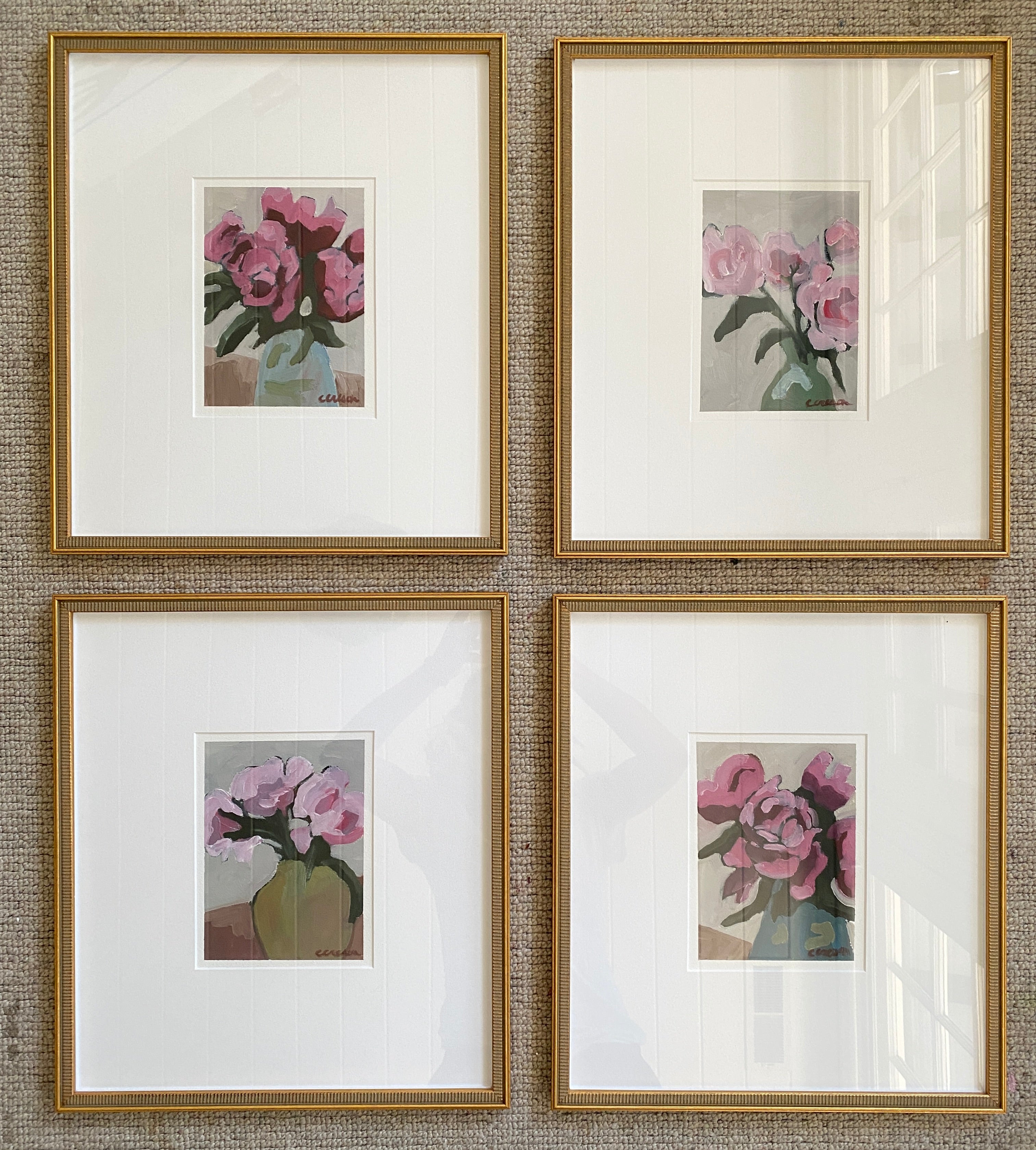 oil on paper, framed in linen mat and gold frame