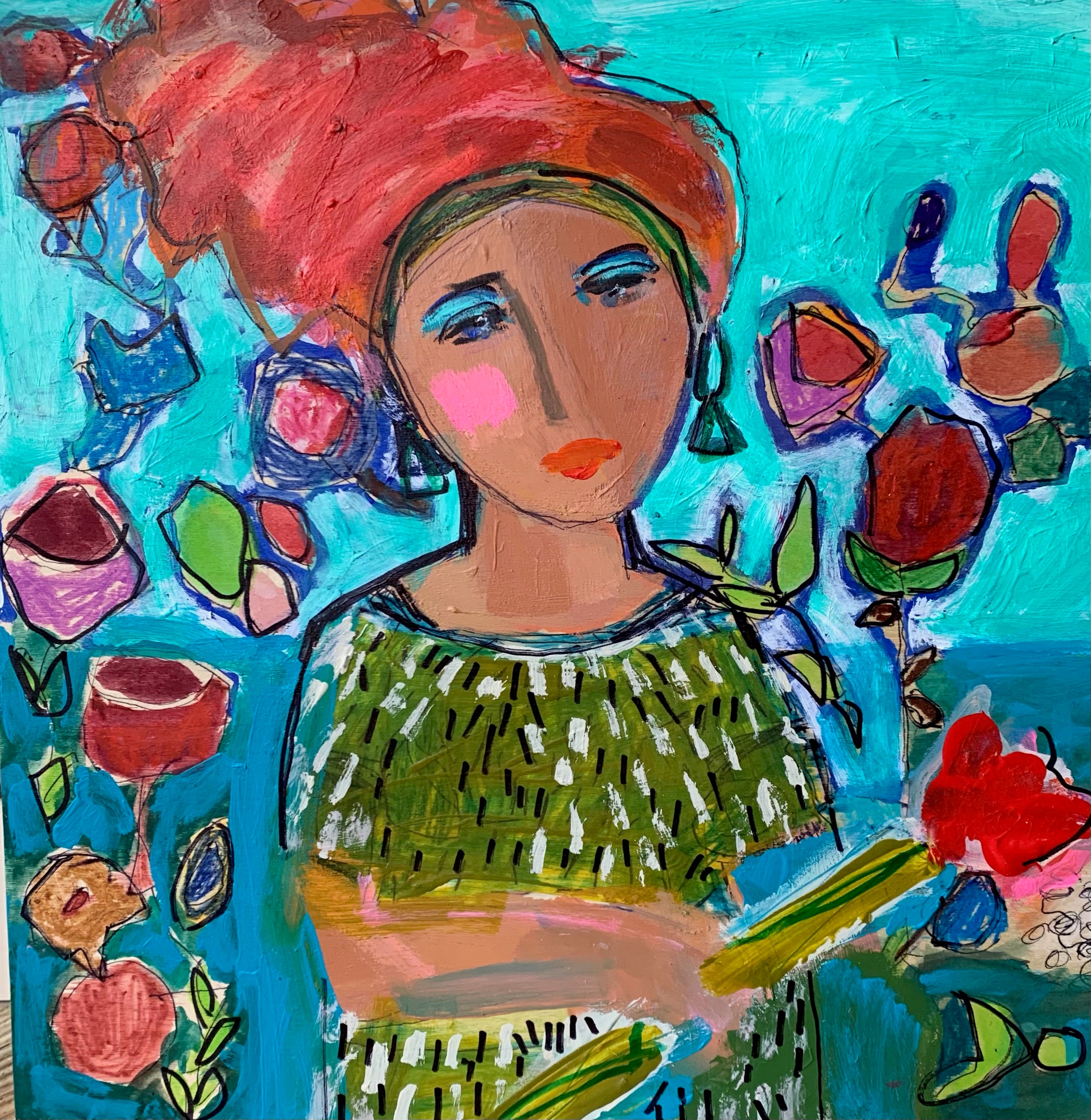 Page Morris picked up a paintbrush in third grade and never looked back. Largely self-taught, her client list reaches as far as Canada and includes syndicated columnist Kathleen Parker. Galleries representing her work include: Verve and Over the Mantle in Columbia, SC; Grand Bohemian Gallery in Charleston, SC and One Kings Lane. "My subject matter is women who are feminine, colorful, playful, strong, and beautiful. I use paper, pencil, markers, oil sticks, and paint to achieve a multi-dimensional look. I love texture because the viewers see even more when they stop to take a second look. I adhere to a rigid schedule of painting each day. Creativity only happens if I'm hard at work in my studio. I love what I do and hope my viewers can see that. It's a joyous experience to pick up a paintbrush. It's what I do and what I am."
