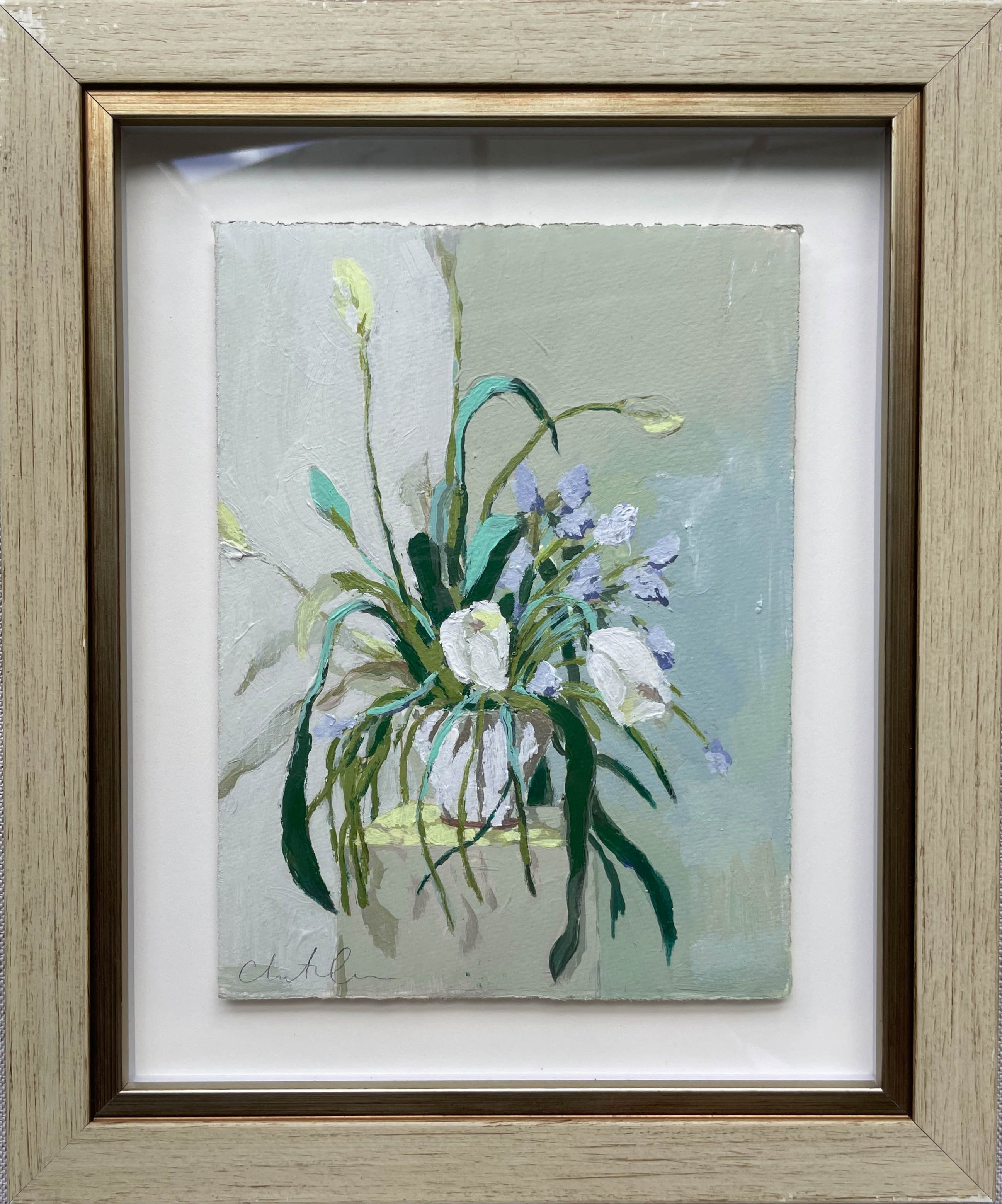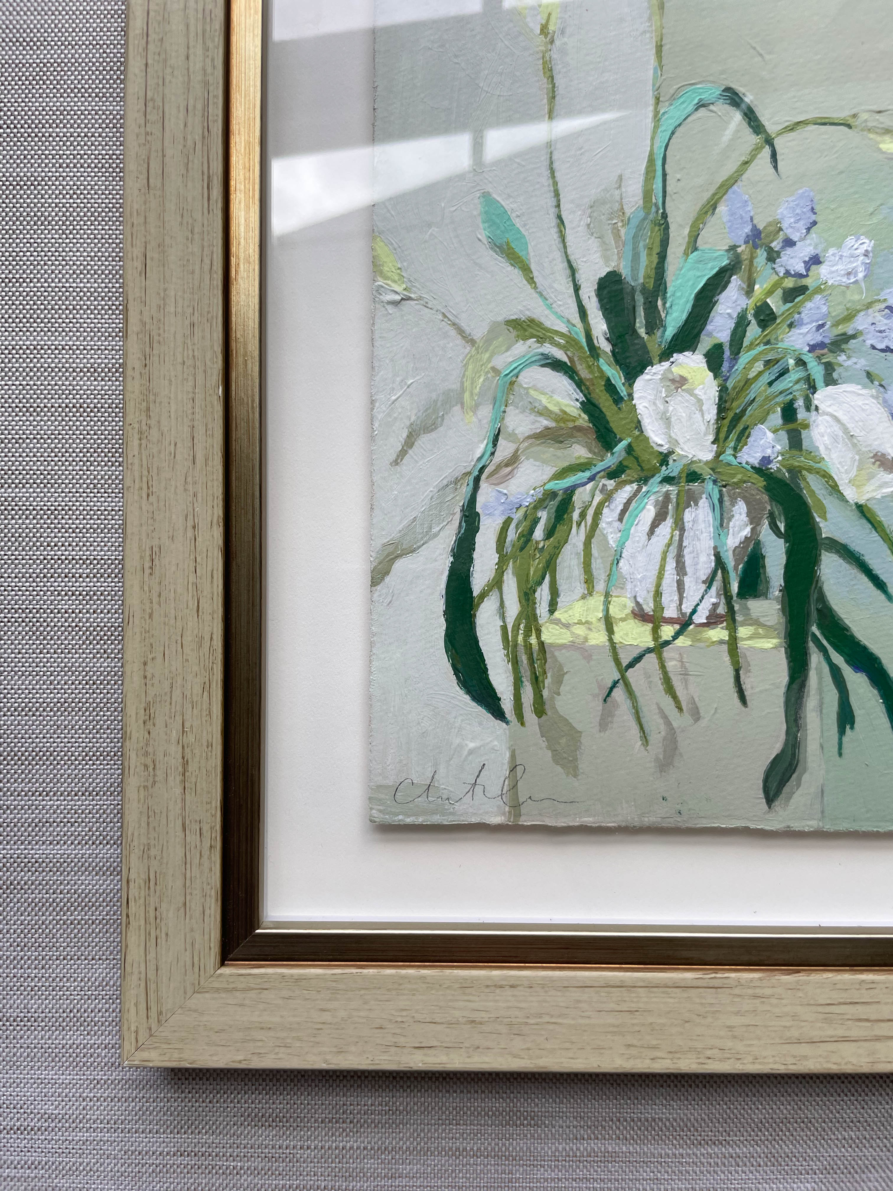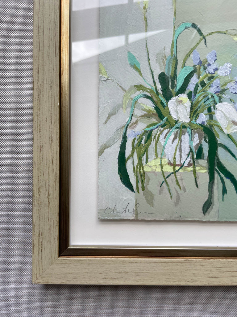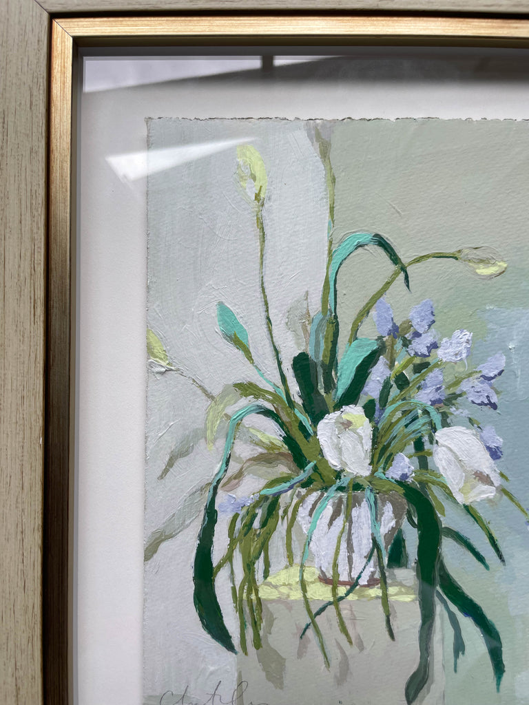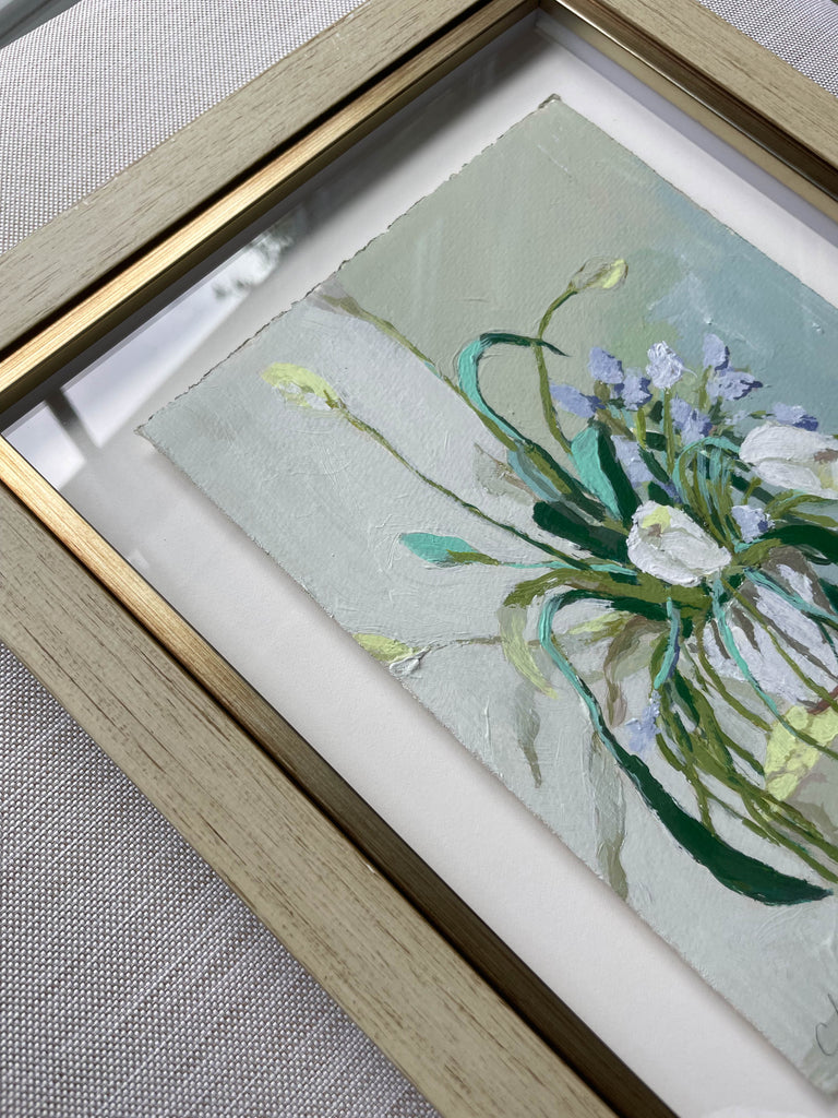 acrylic on cotton paper, floating on white mat, in wooden frame