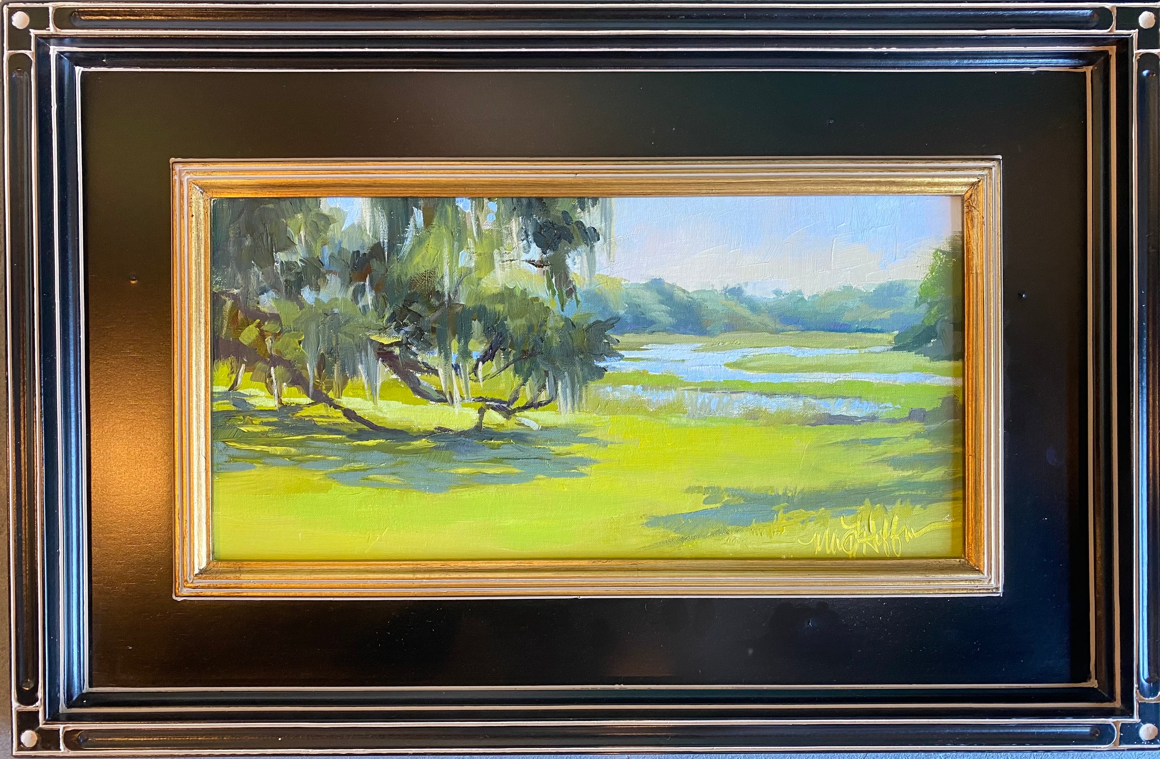 plein air oil painting on belgian linen canvas, in black and gold frame