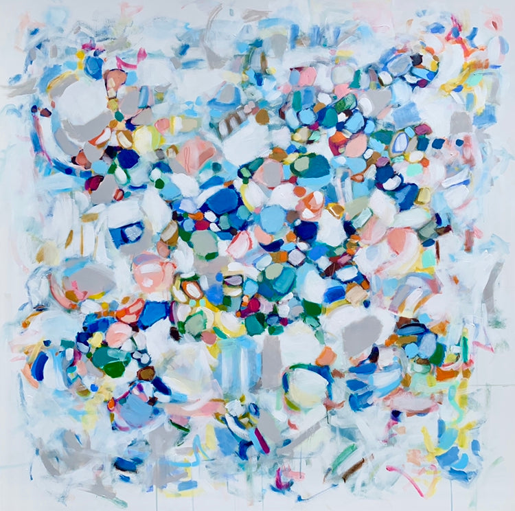 Michele James is an abstract painter known for her large works on canvas. She is inspired by color and movement and uses strong brushstroke and varied marks on neutral canvases with pops of bold colors. She paints with acrylics , and uses chalk, oil pastels and pencil to vary the texture and medium of her works. She is influenced by the colors in nature, the lightness and space of the sky, and the texture and depth of landscapes. “I love to make people happy and for a client to add my painting to their home is wonderful compliment” Michele received a BFA in fine art and art history at Hunter College in New York, NY with a concentration in studio painting. Michele paints out of her home studio in Atlanta where she lives with her husband and three kids.