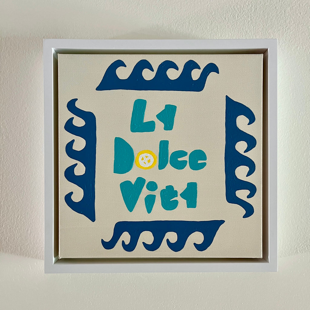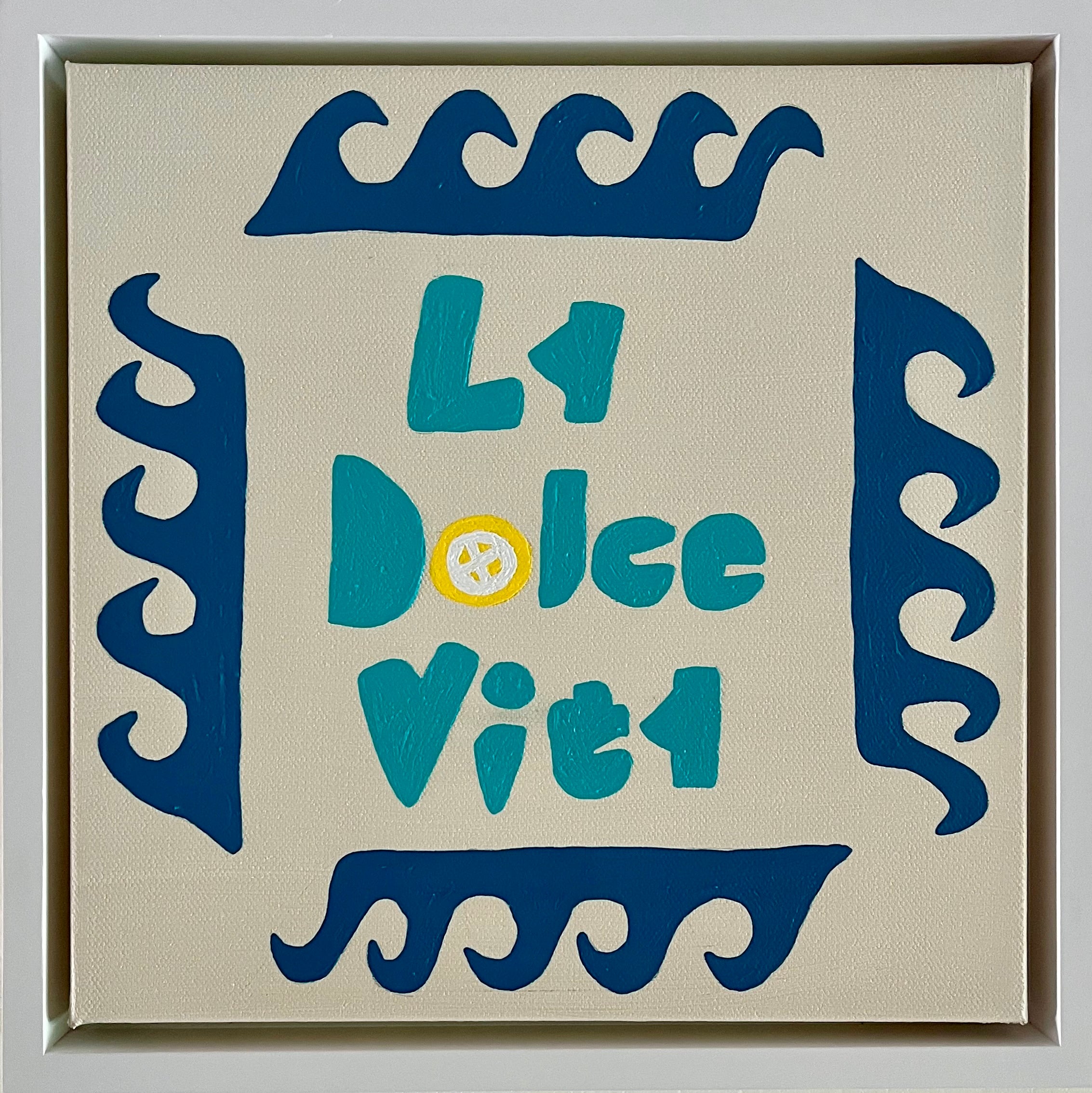 acrylic on gallery wrapped canvas, in white wood floater frame