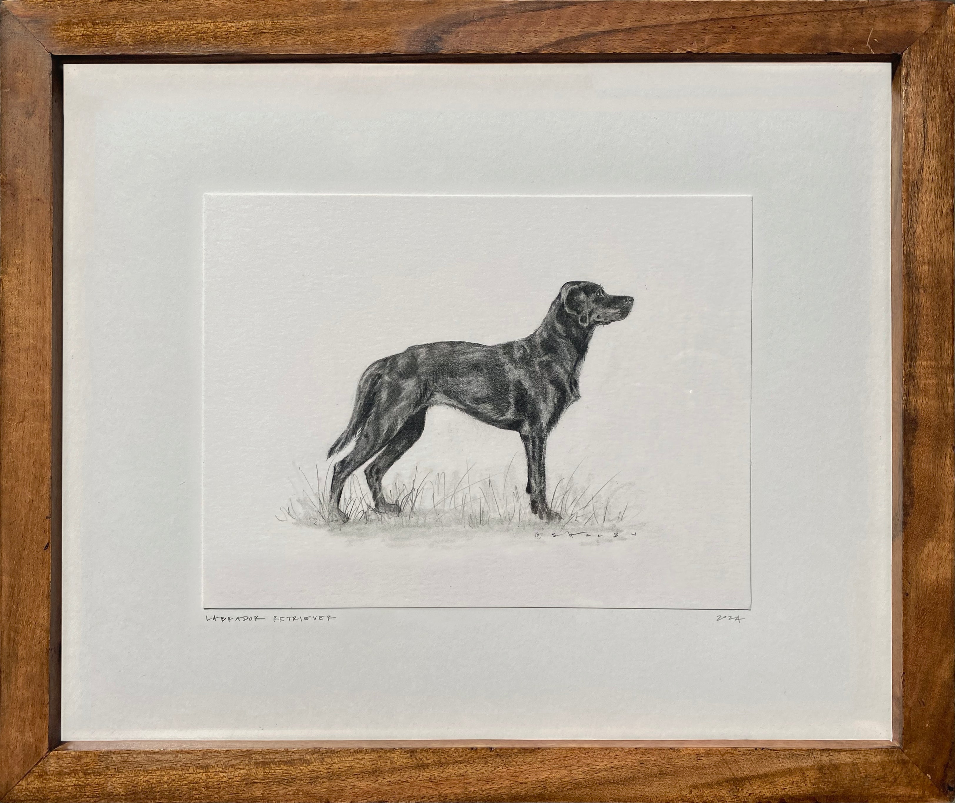 graphite on heavyweight, vellum surface, fine art paper, in natural finish acacia wood frame